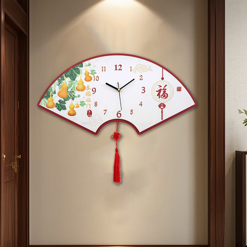 新中式 家用钟挂表 扇形挂钟客厅家用挂墙钟表静音走时客厅2025新款