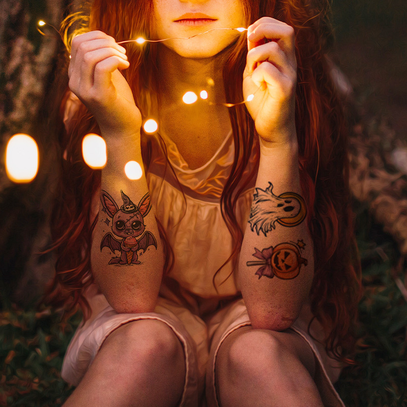 饰品道具 扮女童腮红水印脸部脸上圣诞节贴纸化妆装 万圣节脸贴儿童纹身贴妆容男生南瓜女巫可洗式 恶魔可爱装