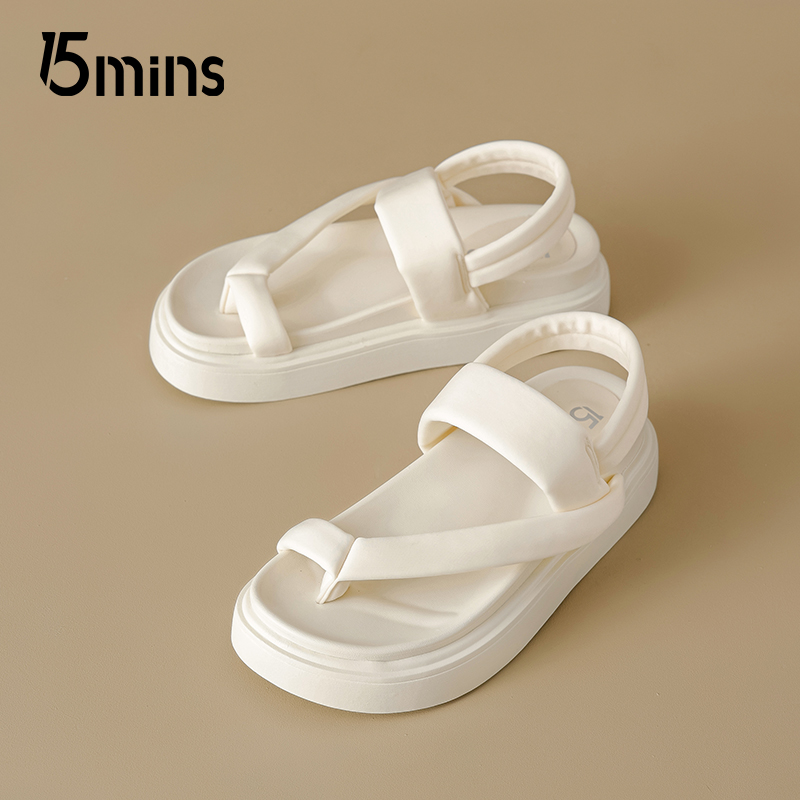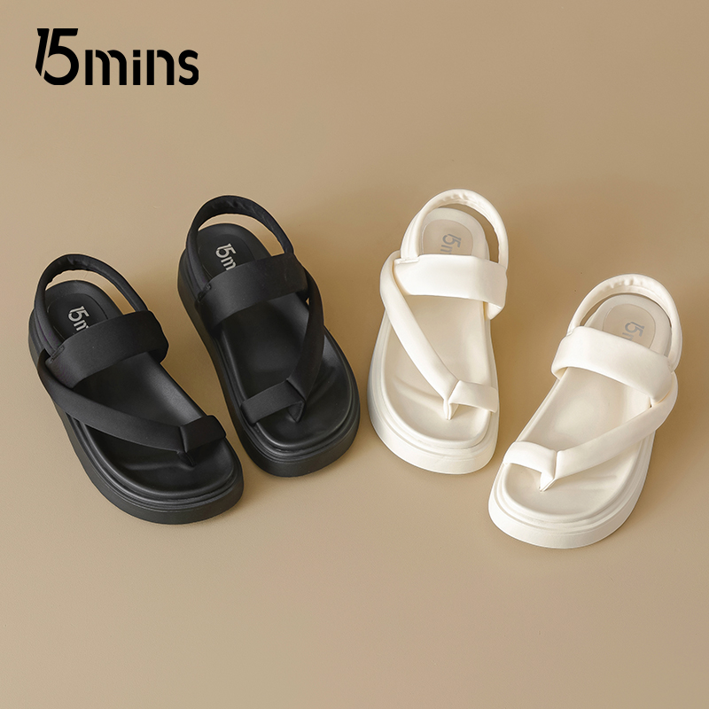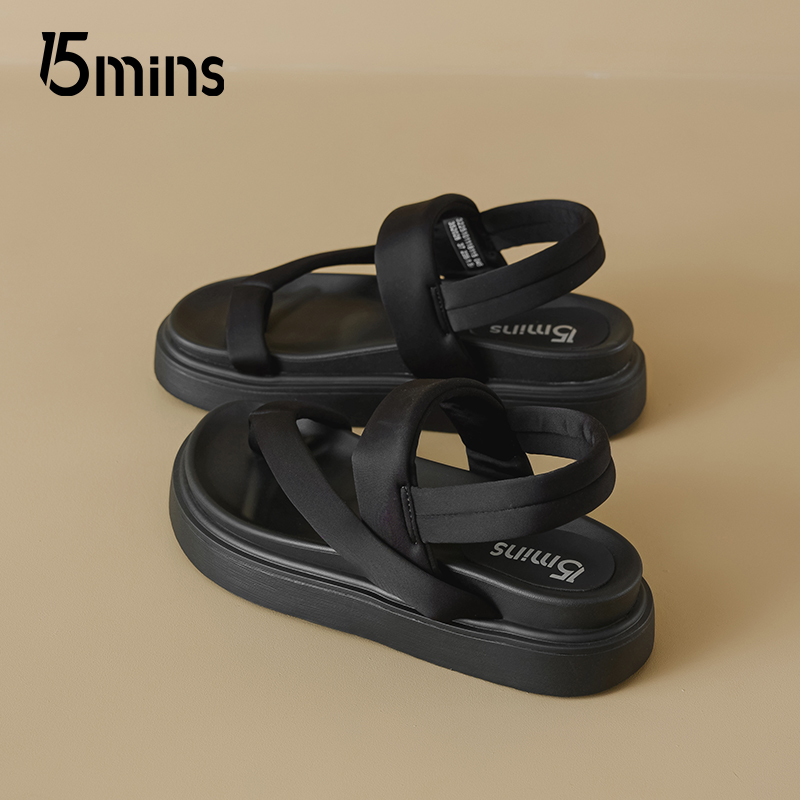 休闲鞋 15mins黑色软底凉鞋 踩屎感厚底增高防滑时尚 新款 女2025夏季