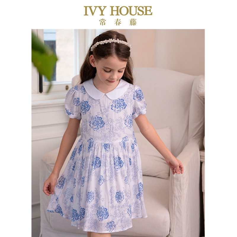 新款 女童2025夏季 甜美娃娃领印花连衣裙子 HOUSE常春藤儿童装 IVY
