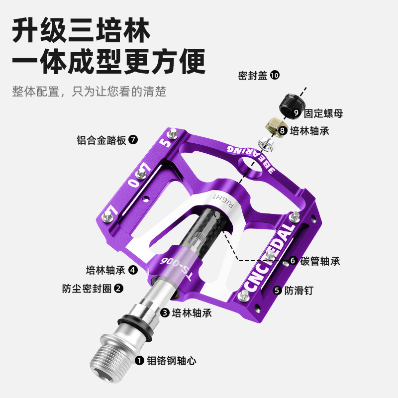 塔斯队长自行车脚踏山地公路车滚轮轴承三培脚踏单车骑行脚蹬装 备