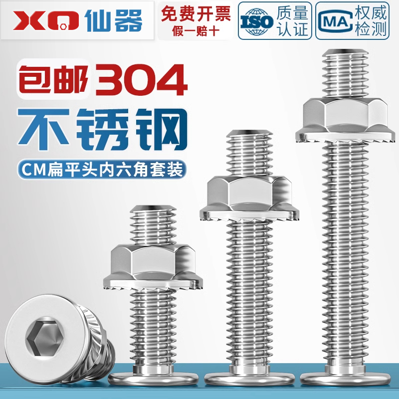 304不锈钢CM大平头超薄头C头扁平头内六角螺丝钉法兰边螺母套装
