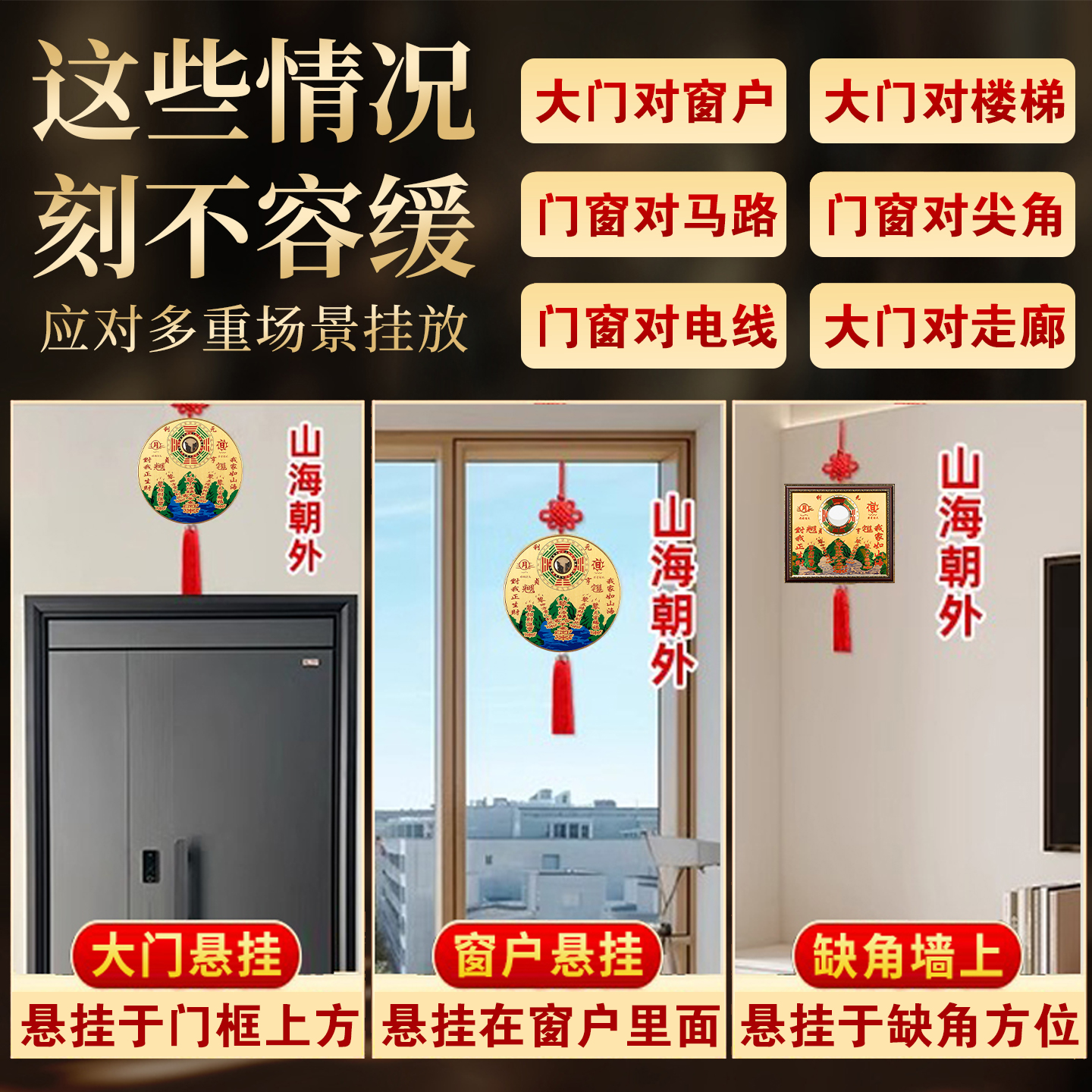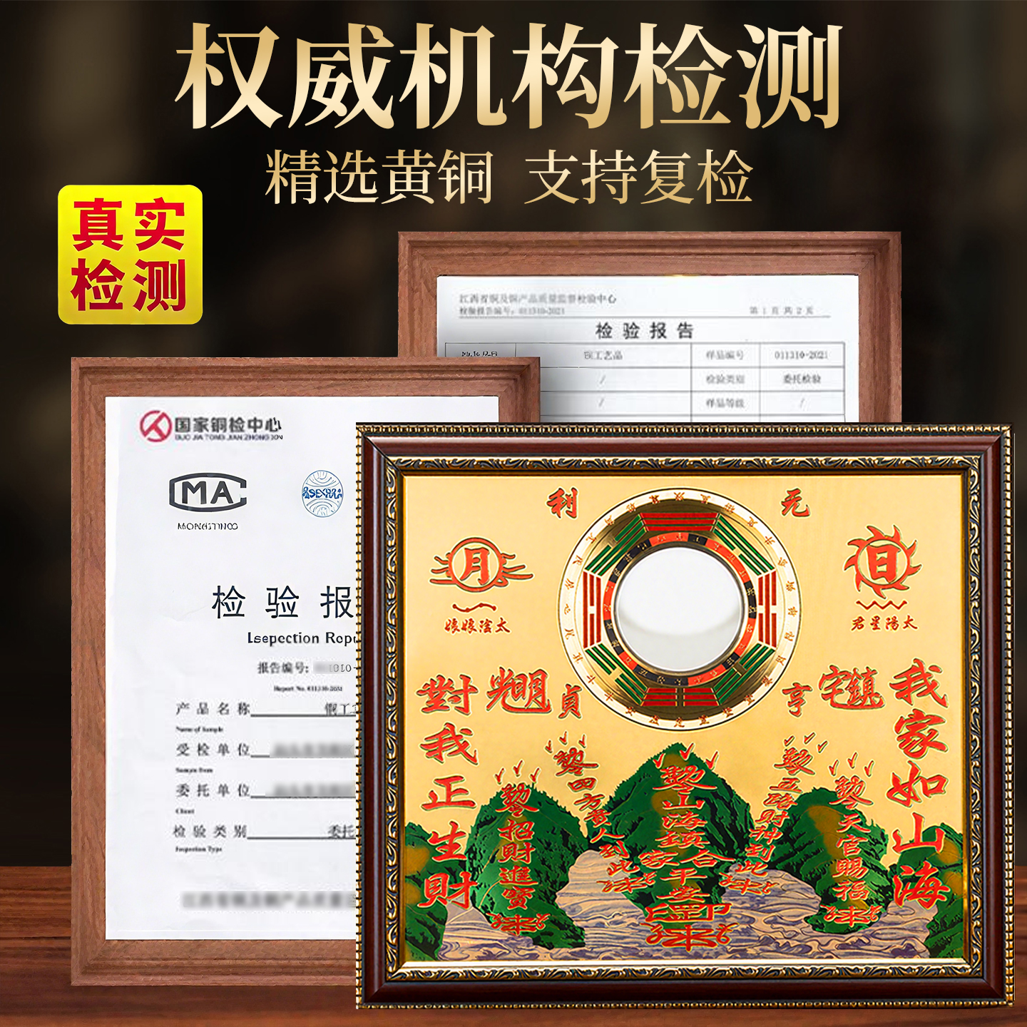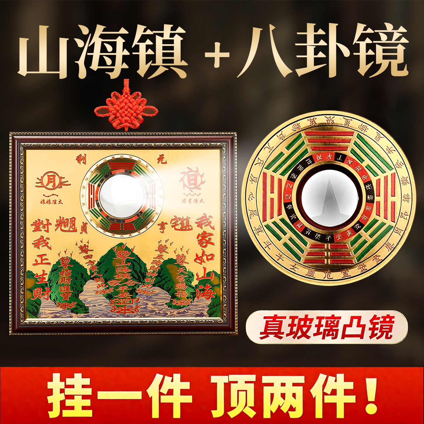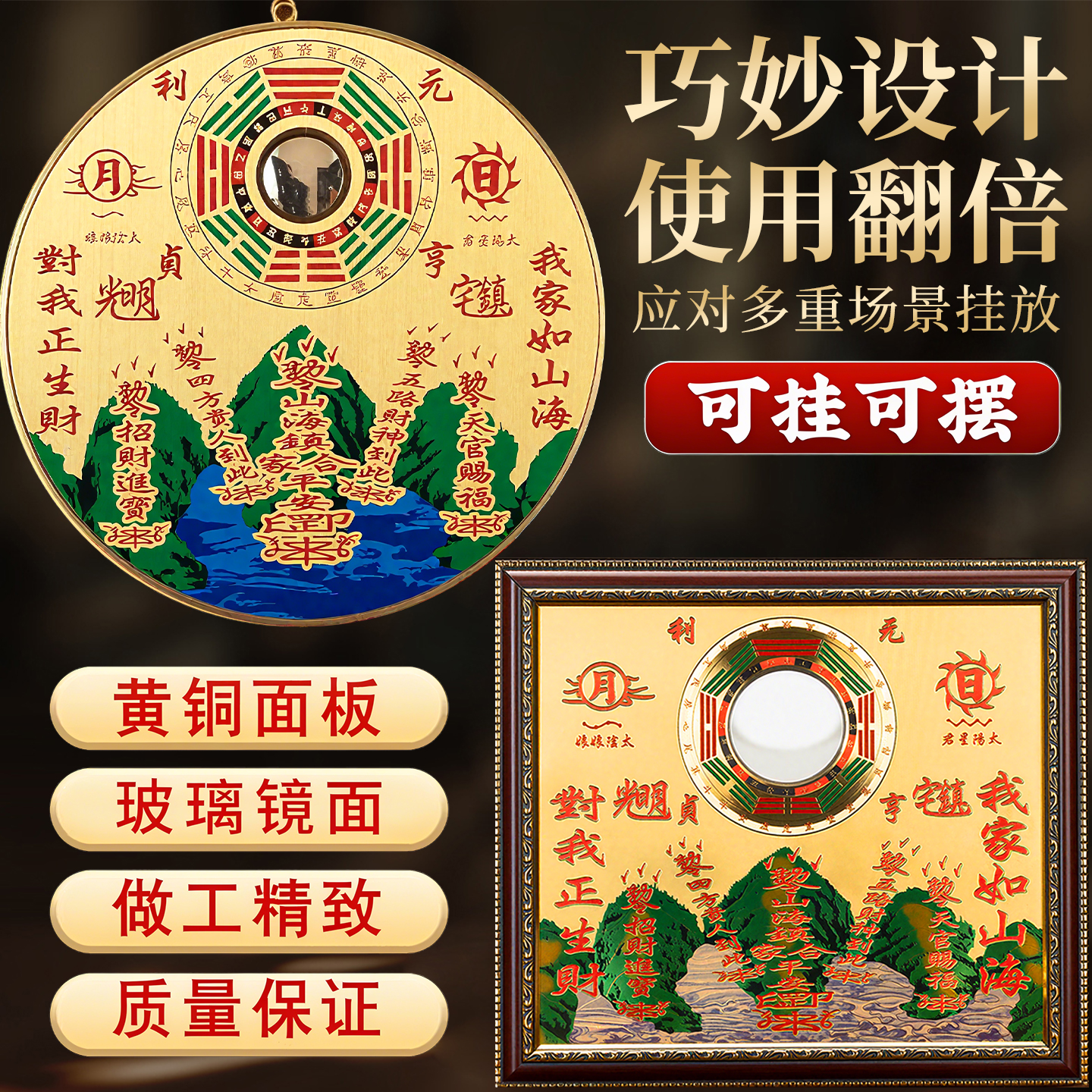 纯黄铜山海镇室内摆件麒麟山海镇凸镜室外挂件凸面挂饰