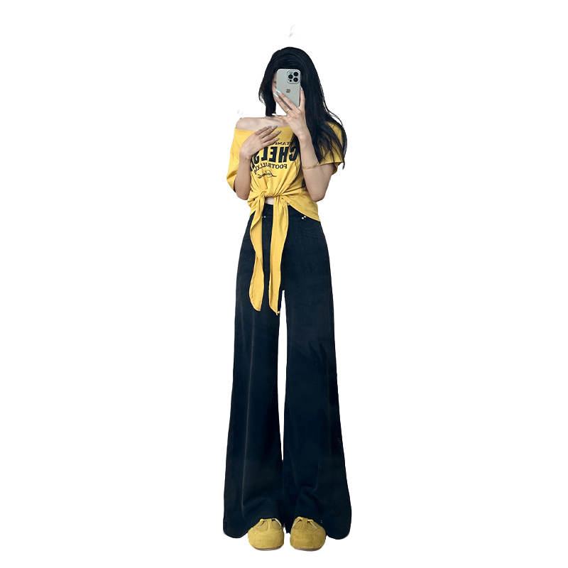 高腰宽松垂感黑色拖地裤 乔栈秋季 女新款 气质阔腿微喇牛仔裤 爆款