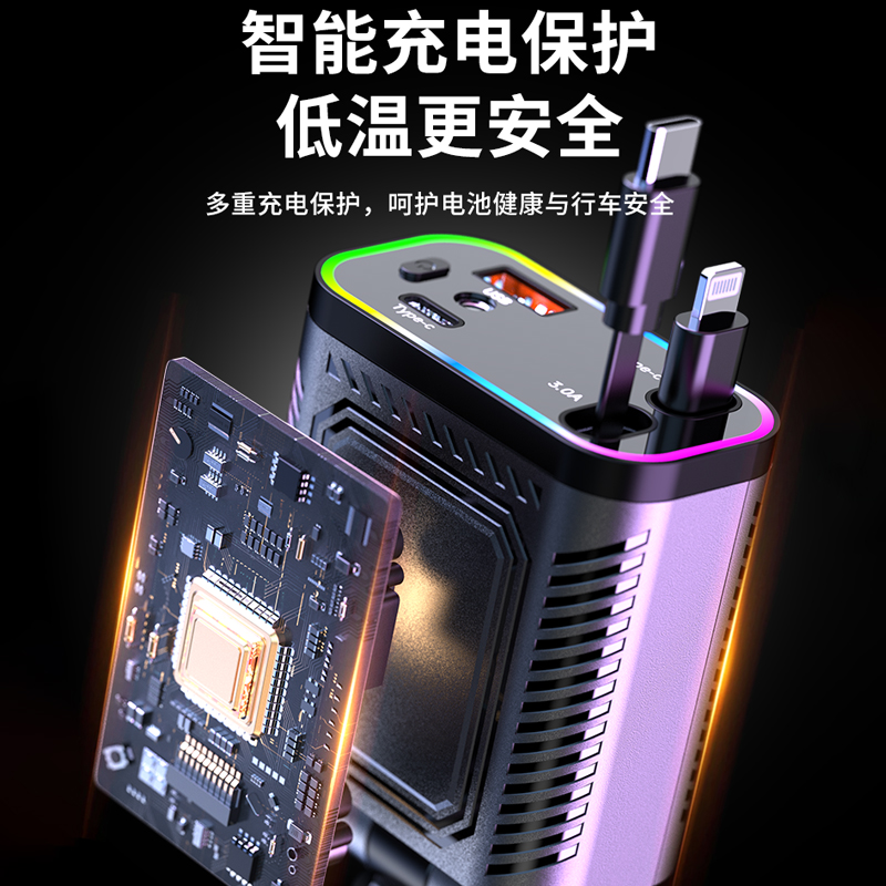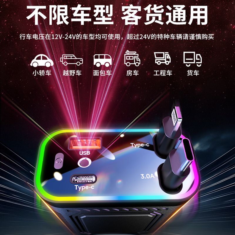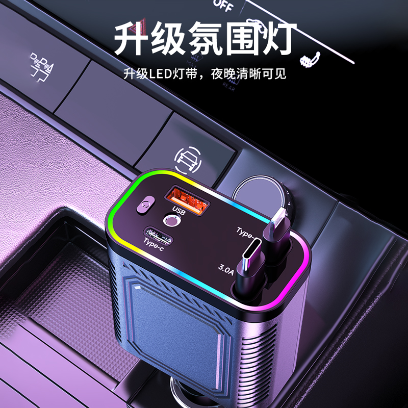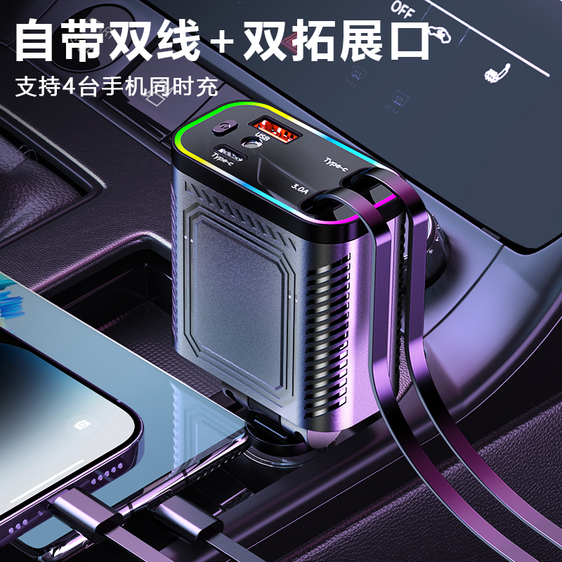 星空顶车载点烟器汽车上充电器一拖二伸缩线120W手机超级快充新款