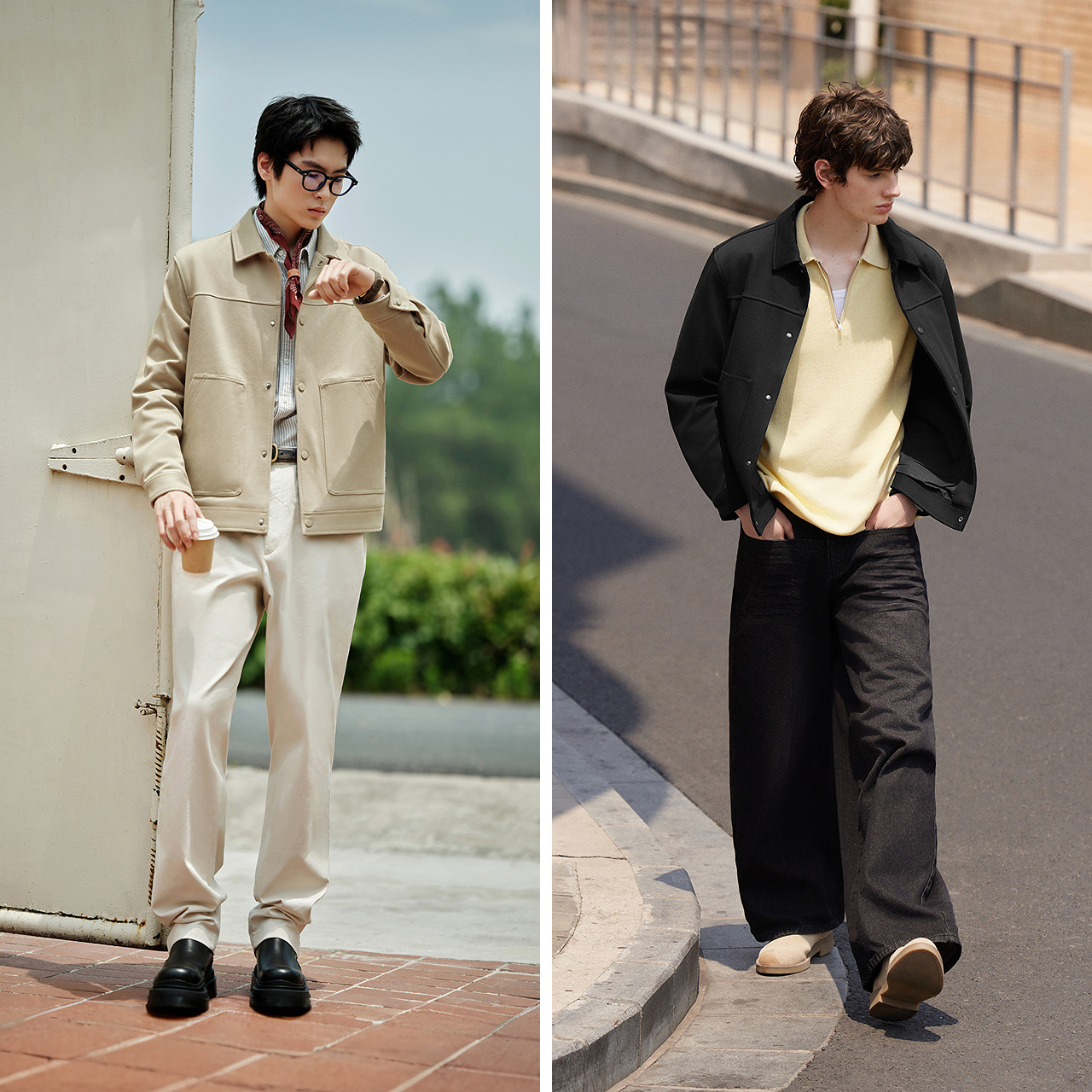 森马外套男2025秋季 上衣棉质弹力纯色百搭针织夹克 通勤休闲工装