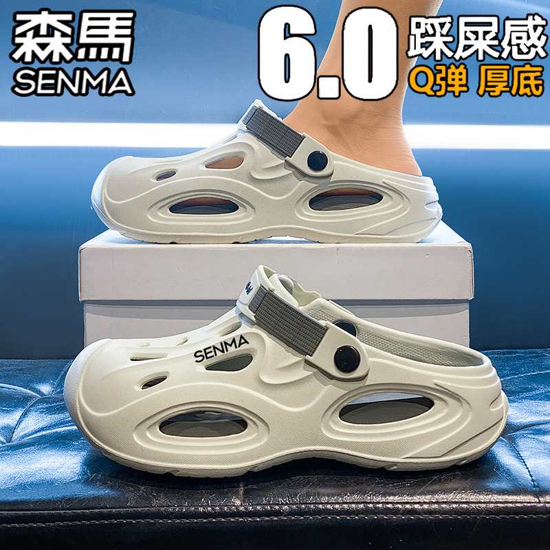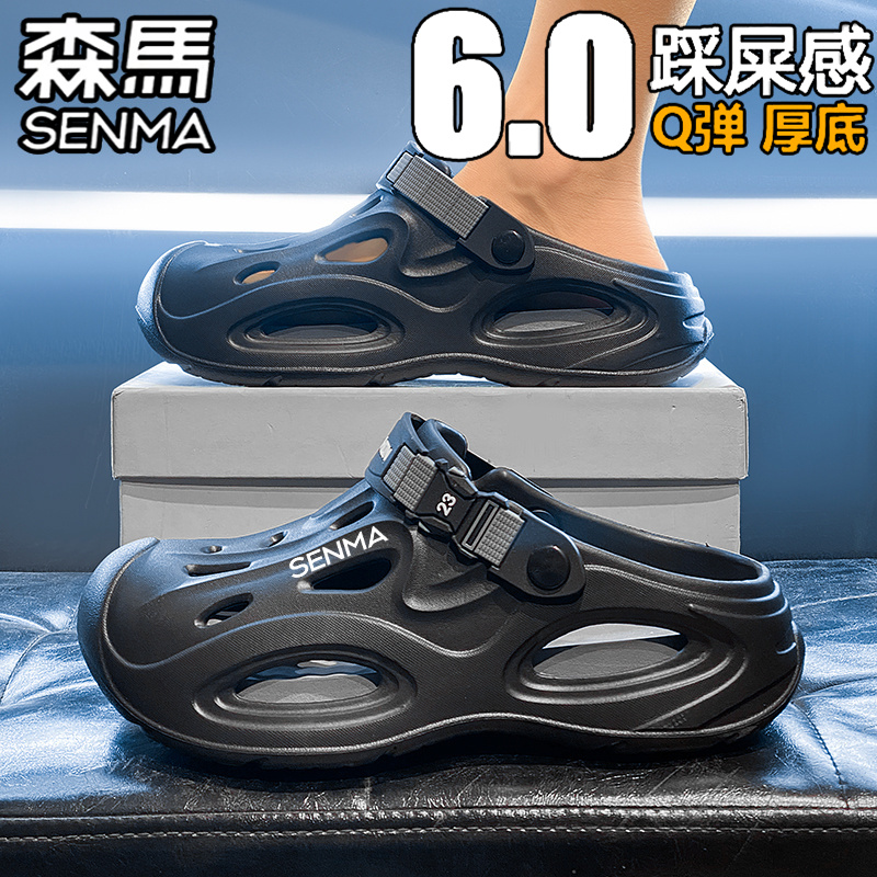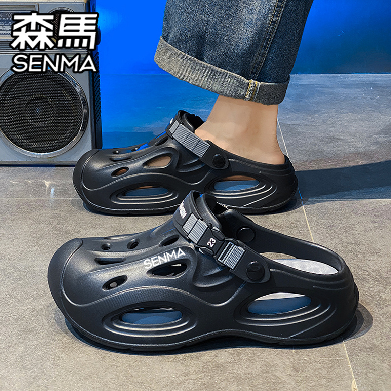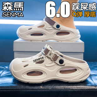 户外两穿厚底增高沙滩凉鞋 外穿防滑防臭包头拖鞋 男夏季 森马洞洞鞋