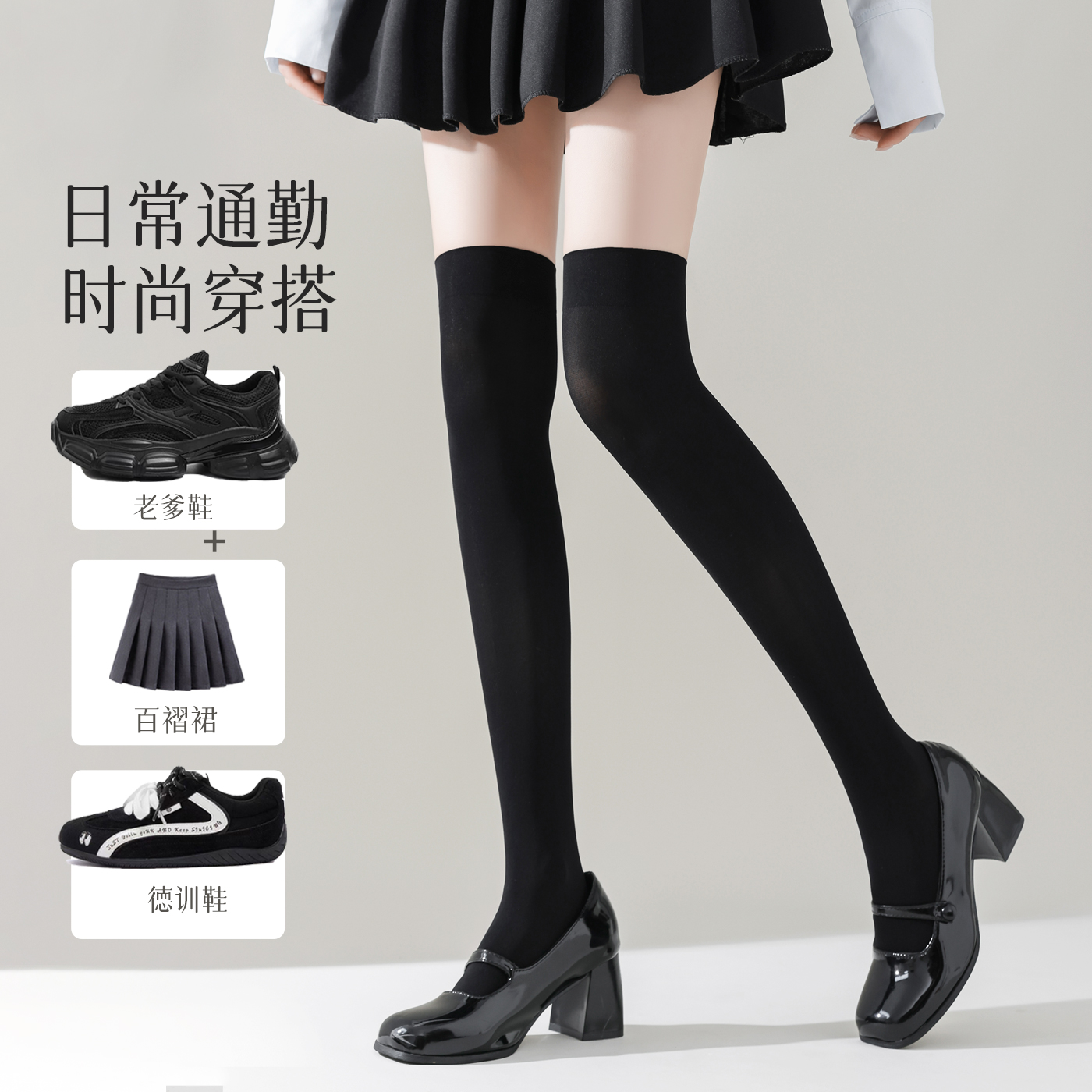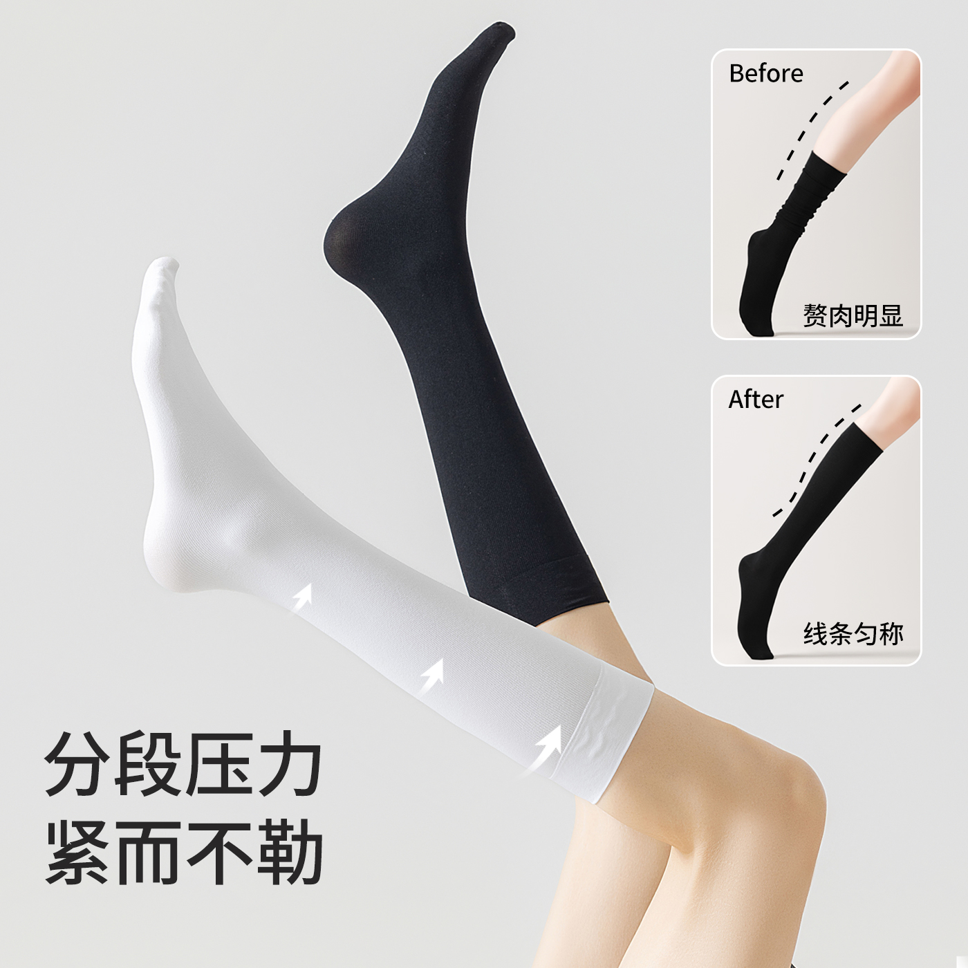黑色压力过膝袜女夏季 性感小腿袜子防下滑长筒丝袜白色大腿袜 薄款