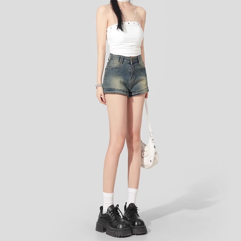 辣妹高腰a字显瘦小个子超短裤 大码 女2025新款 牛仔短裤 子梨型 美式