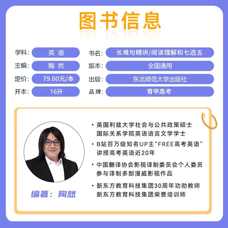 育甲新陶然free高考英语阅读理解和七选五100篇长难句精选120例新高考全国通用高三英语专项突破强化训练高中英语阅读理解完形填空