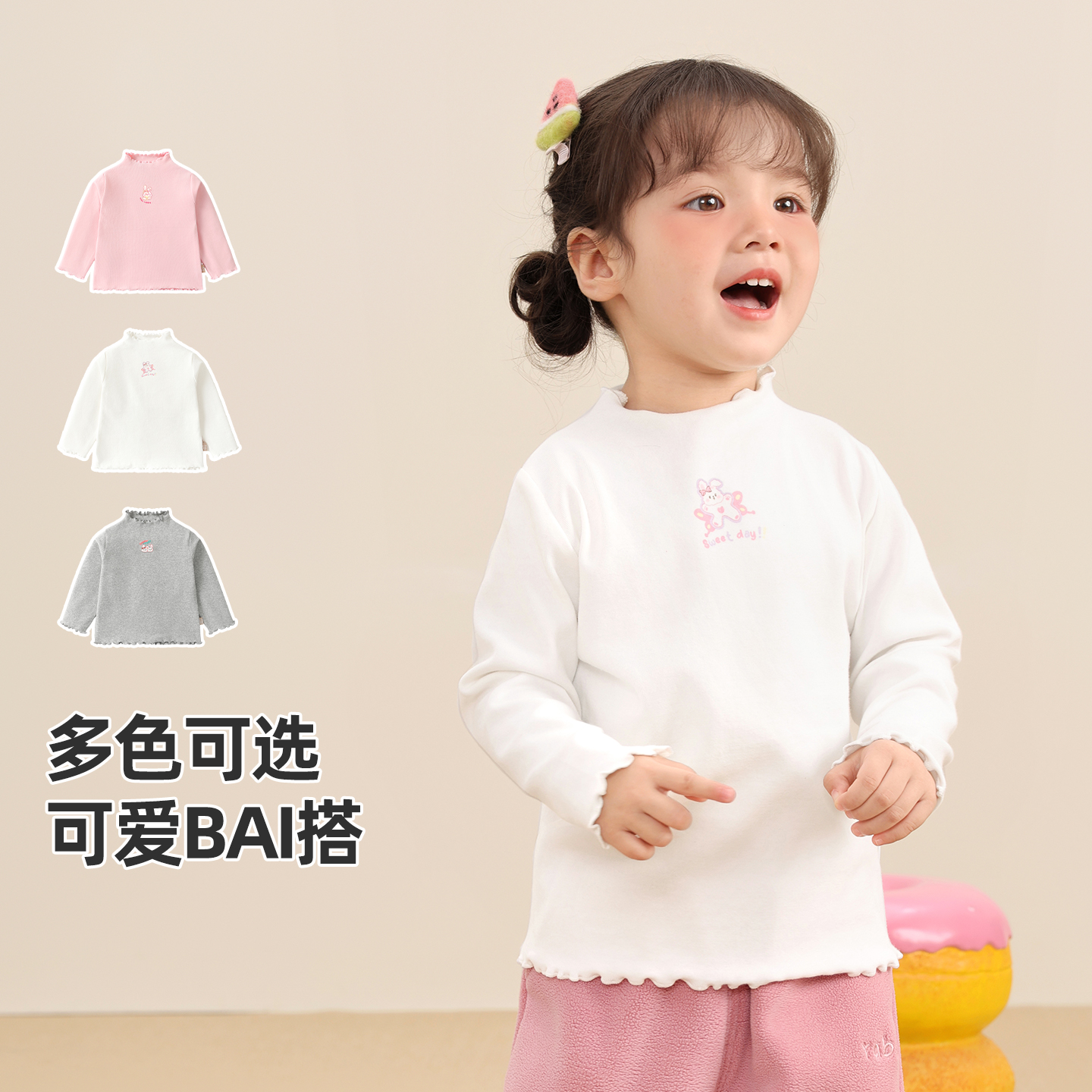 T恤春秋宝宝冬装 女童花边领长袖 上衣 秋装 咔咔熊猫女宝条纹打底衫