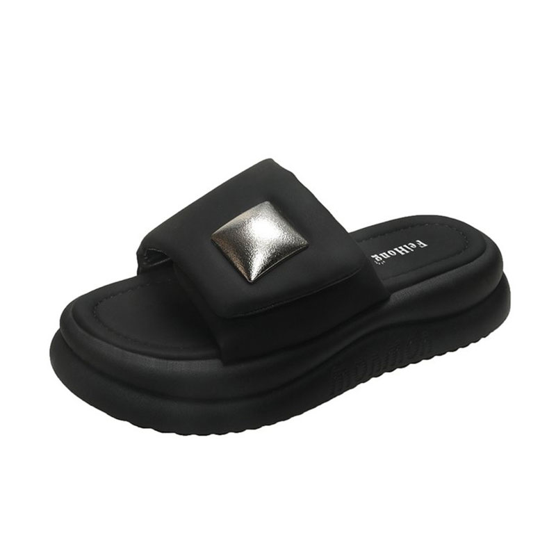 百搭魔术贴增高一字面包拖鞋 时尚 女夏外穿2025新款 松糕厚底凉拖鞋