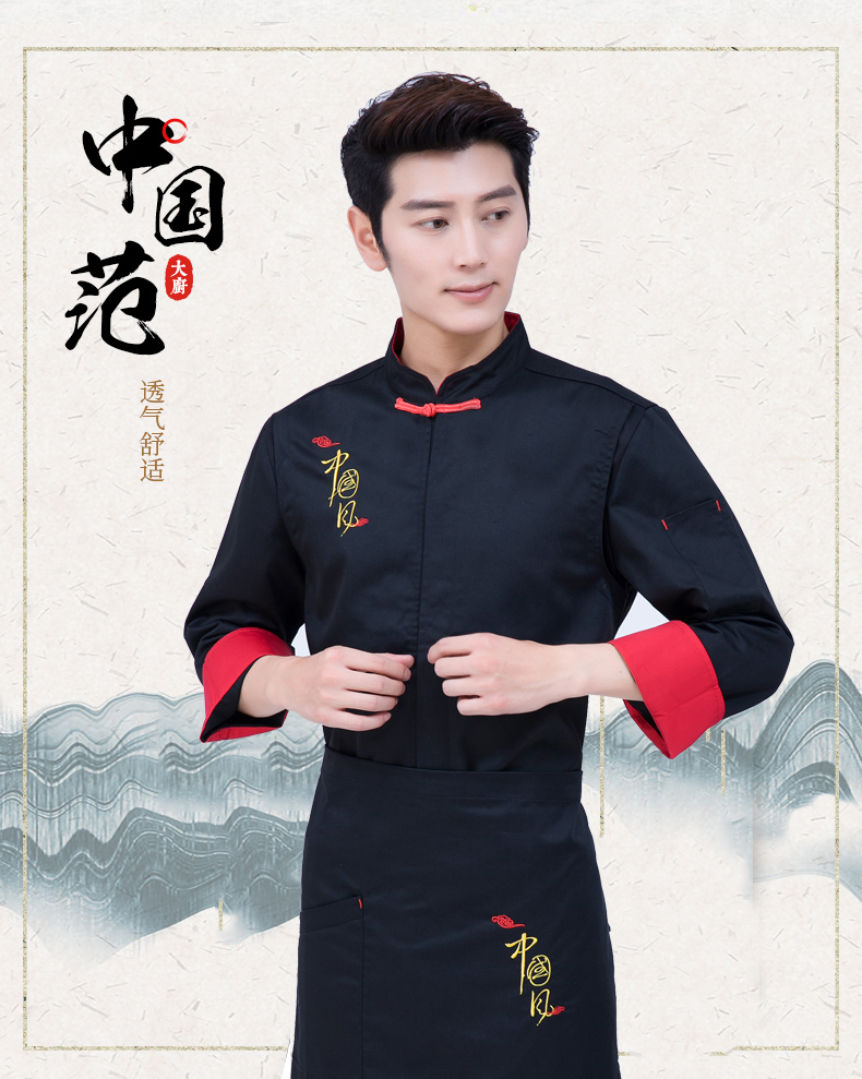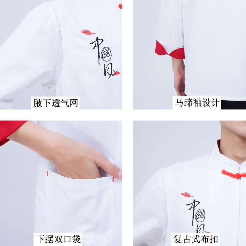 中国风餐饮后厨房厨师服 大码 特色酒店餐厅厨师工作服男长袖 秋冬装