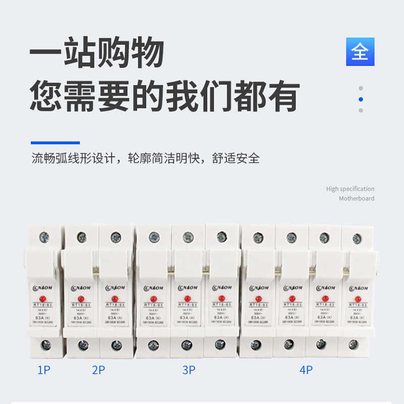 1P2P3P4P 保险丝500V 低压熔断器底座RT18 63X带灯63A三极卡轨式