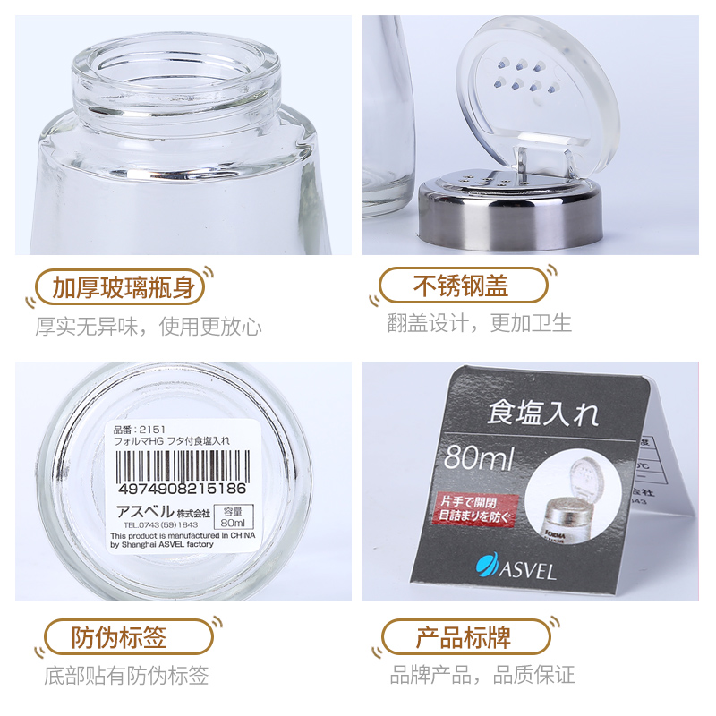 日本ASVEL食盐瓶不锈钢玻璃带盖胡椒瓶粉末调料瓶烧烤餐厅佐料瓶