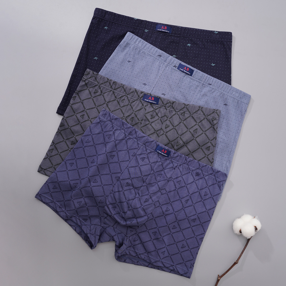 薄款 纯棉平角裤 抗菌中腰裤 2条ab男士 透气四角短裤 夏季 衩大码 内裤