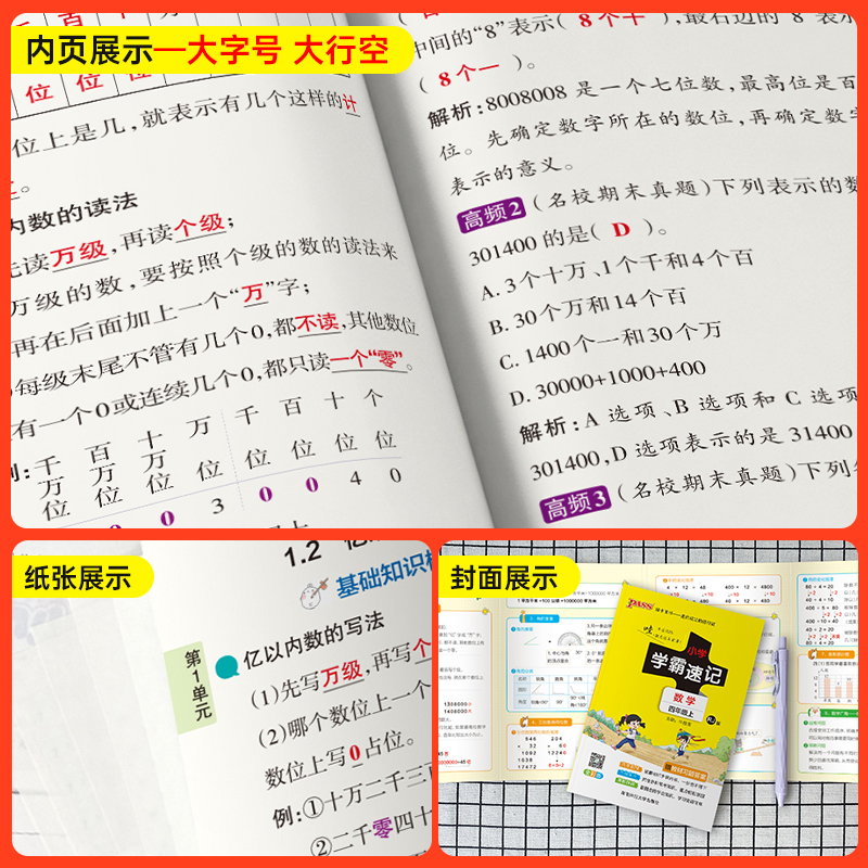 解题技巧复习考试前背诵PASS绿卡图书 小学学霸速记四年级数学上册下册课本知识点汇总同步速查思维训练4数学公式 数学人教版