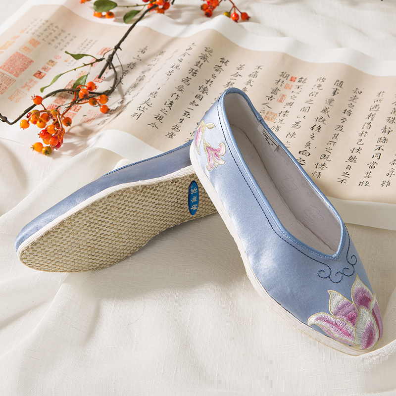 手工千层底女真丝刺绣玉兰尖头单鞋 内联升布鞋 女鞋 新款 8650A 春季