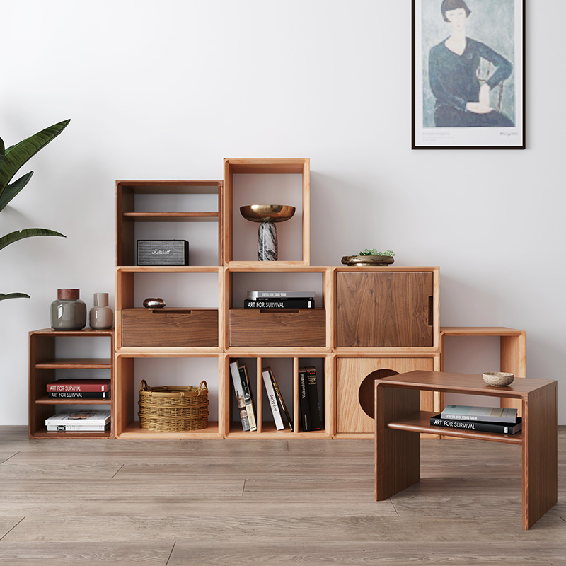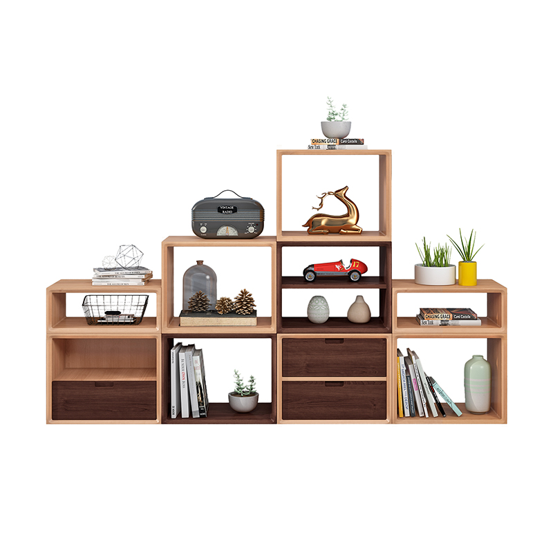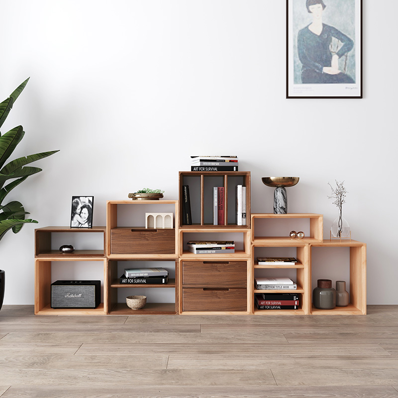 实木书架落地置物架自由组合书柜客厅书房儿童家用收纳矮格子柜