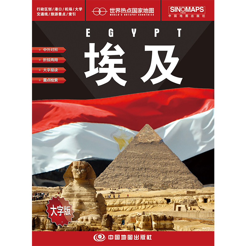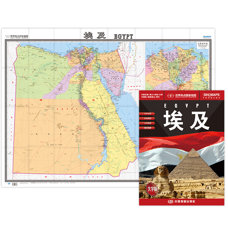 社埃及政区地图 埃及地图大字版 中国地图出版 世界热点国家地图865mm×1170mm大全开折叠地图 中东国家埃及地图 中英文对照