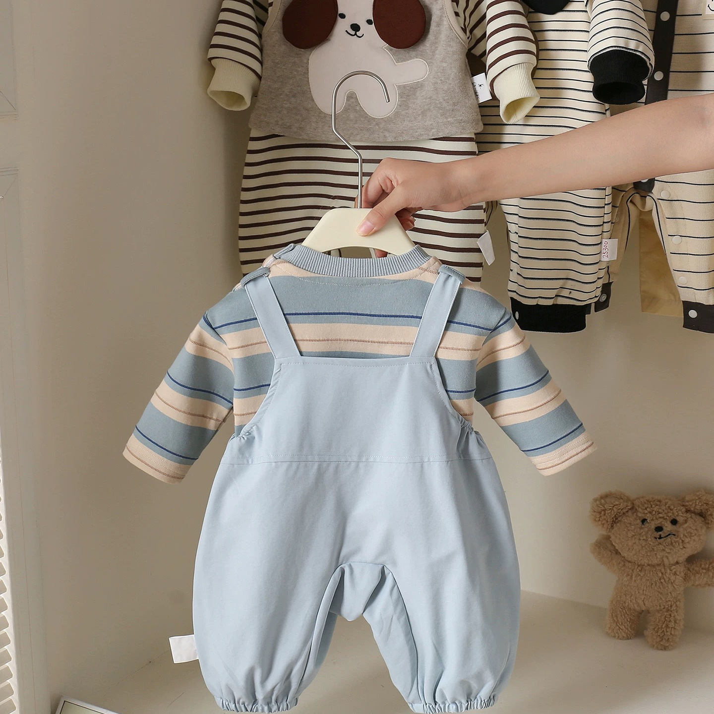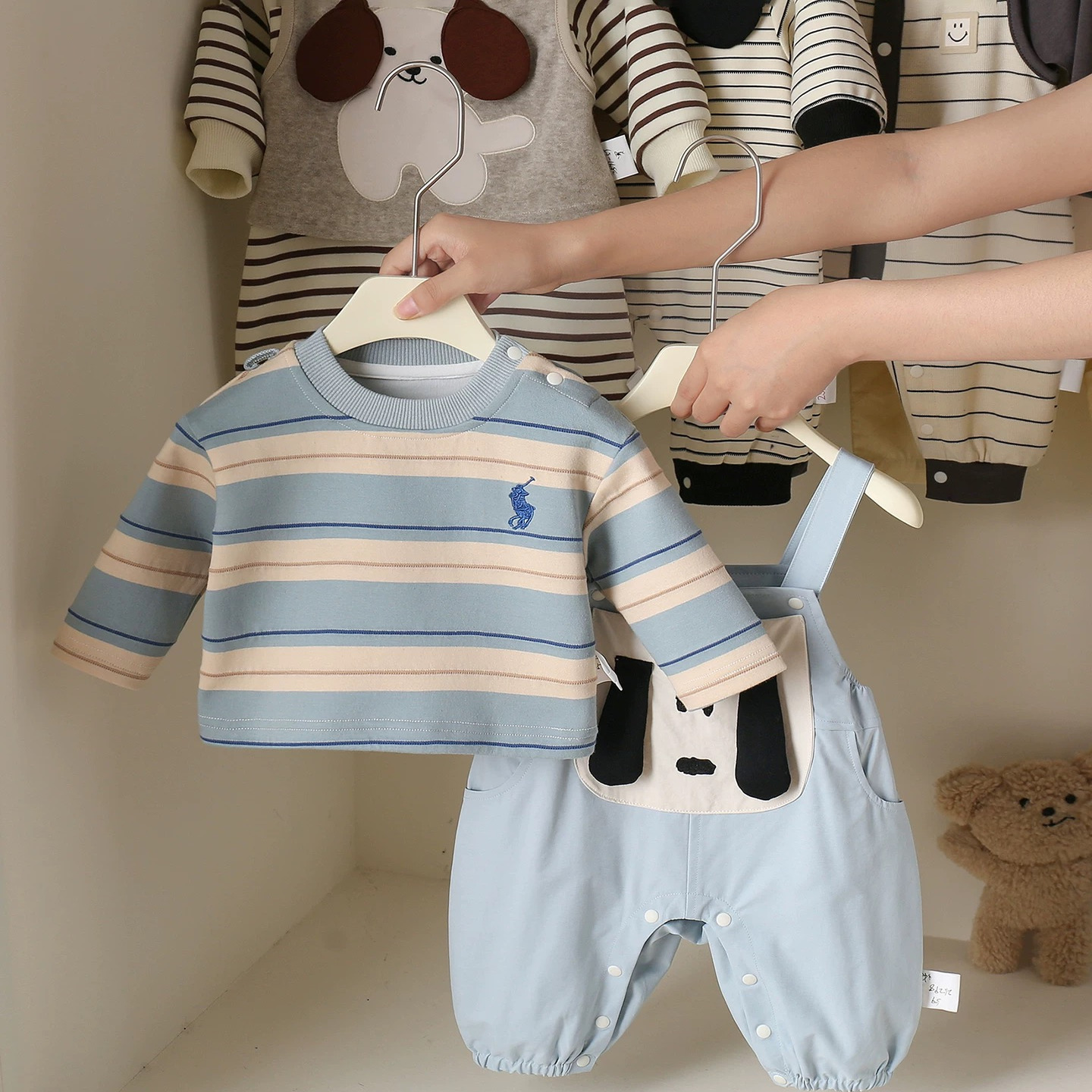 婴幼儿衣服春秋装 男宝宝外出服满月百天可爱卡通飞行小狗两件套装