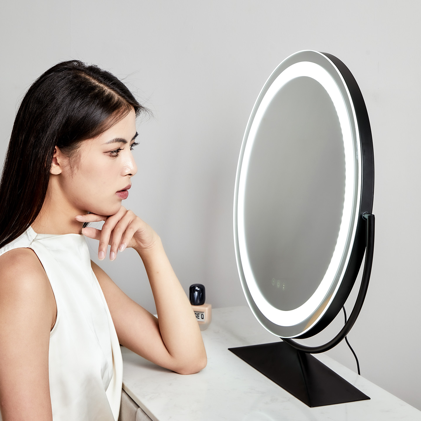 化妆镜带灯桌面台式 圆形梳妆台镜子卧室美妆镜智能补光大号梳妆镜