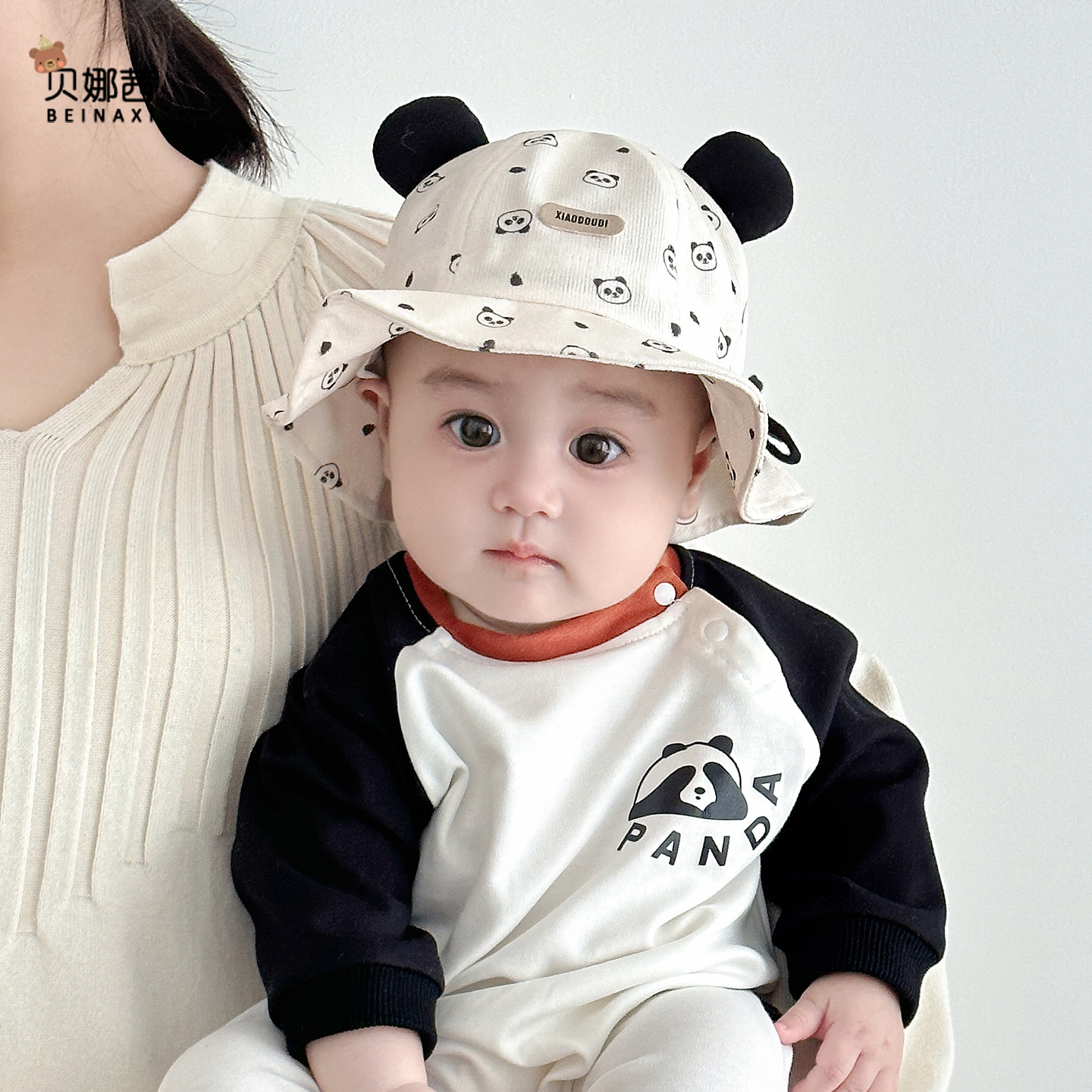 尼多熊婴儿帽子秋围脖一体宝宝毛绒帽防风护耳帽冬季 保暖婴幼儿帽