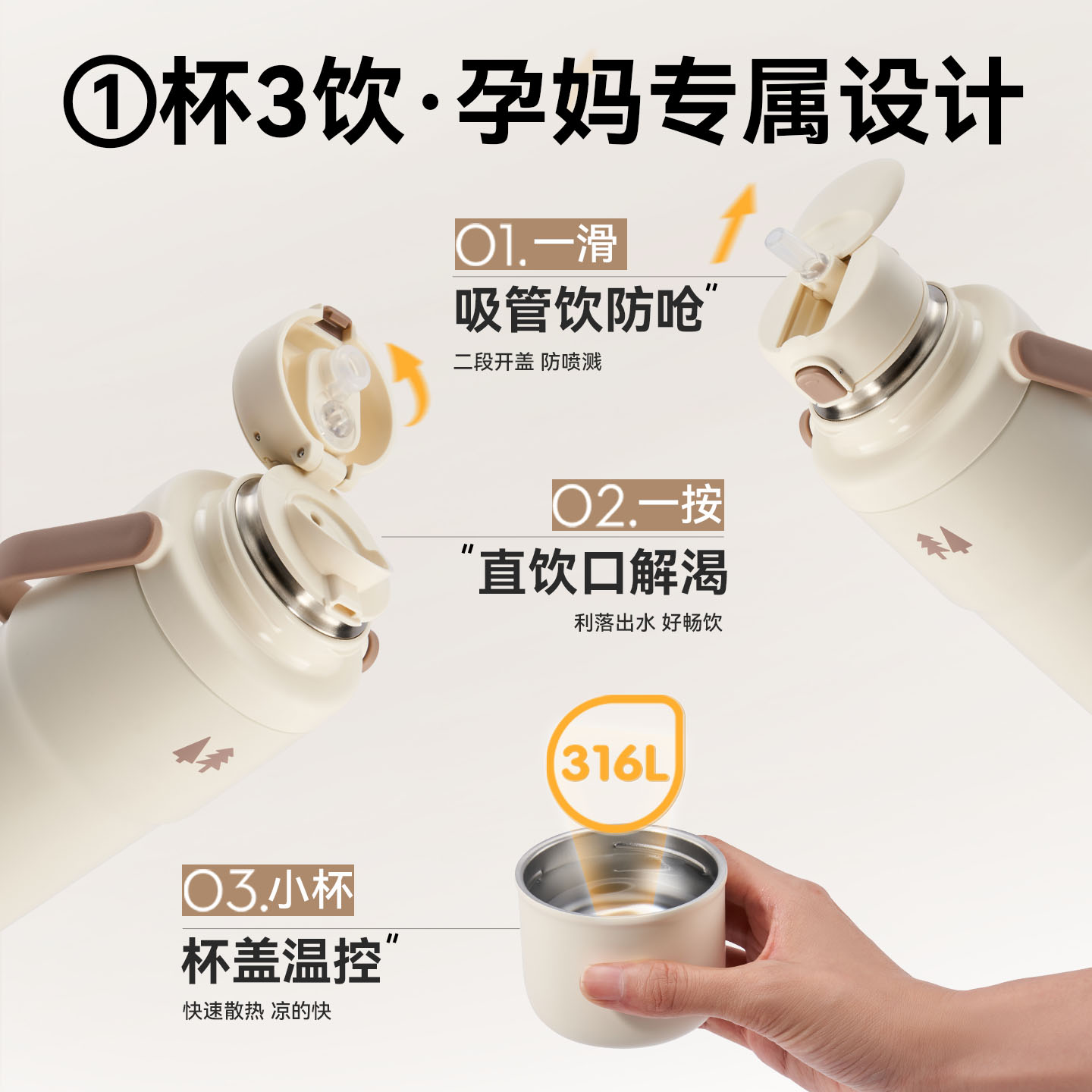 苏泊尔吸管杯孕妇产妇专用杯子大容量保温水杯女生高颜值新款 水杯