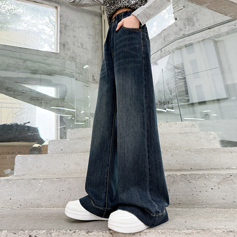 中大童高腰加绒直筒宽松女孩休闲裤 2025新款 子潮 秋冬季 女童牛仔裤