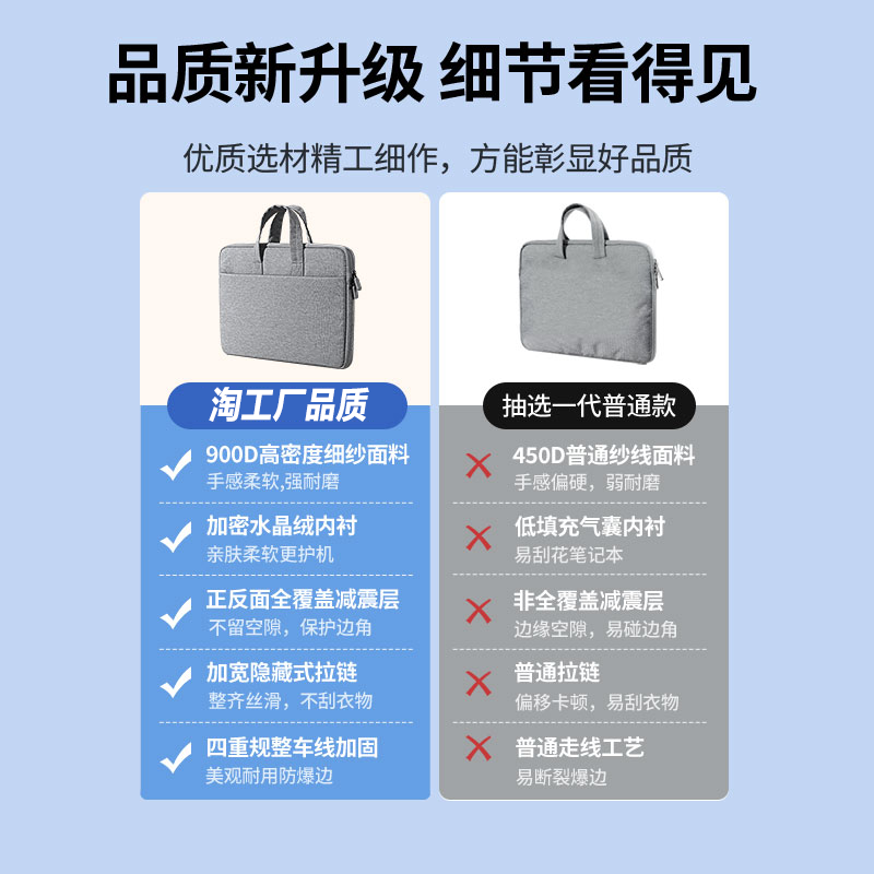 防水保护套 15寸新款 绿联笔记本电脑包手提包公文包适用苹果macbook air荣耀华为matebook联想14寸16寸小新13
