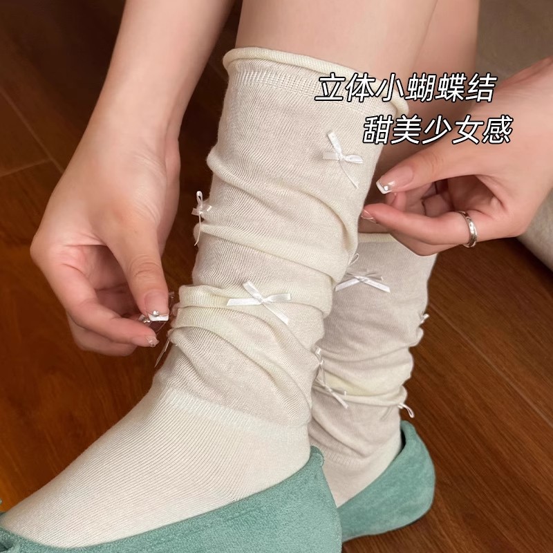 夏天芭蕾风袜子女堆堆袜miu系中筒袜夏季 长筒小腿袜子白色黑色