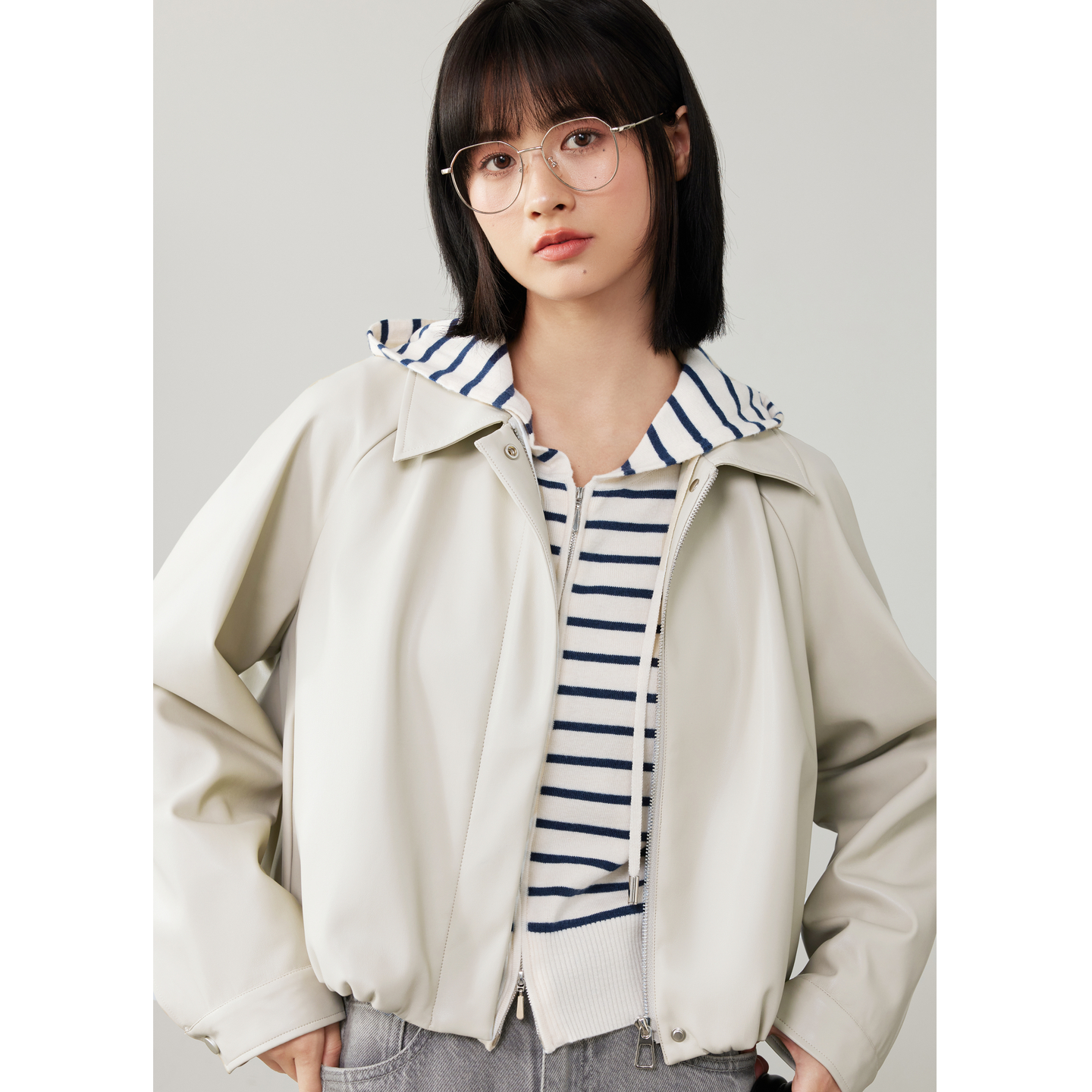 波司登巴恩风25新款 复古轻薄羽绒服光泽小个子外套拼接出游 女短款