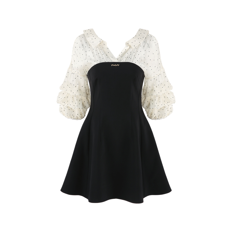 2025新款 假两件法式 连衣裙秋装 长袖 设计感小众绝美a字裙 波点衬衫