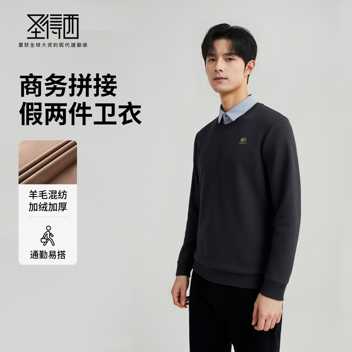 简约百搭套头上衣Y 男士 鸭鸭绵羊毛奥粒绒圆领卫衣2025年秋季 新款