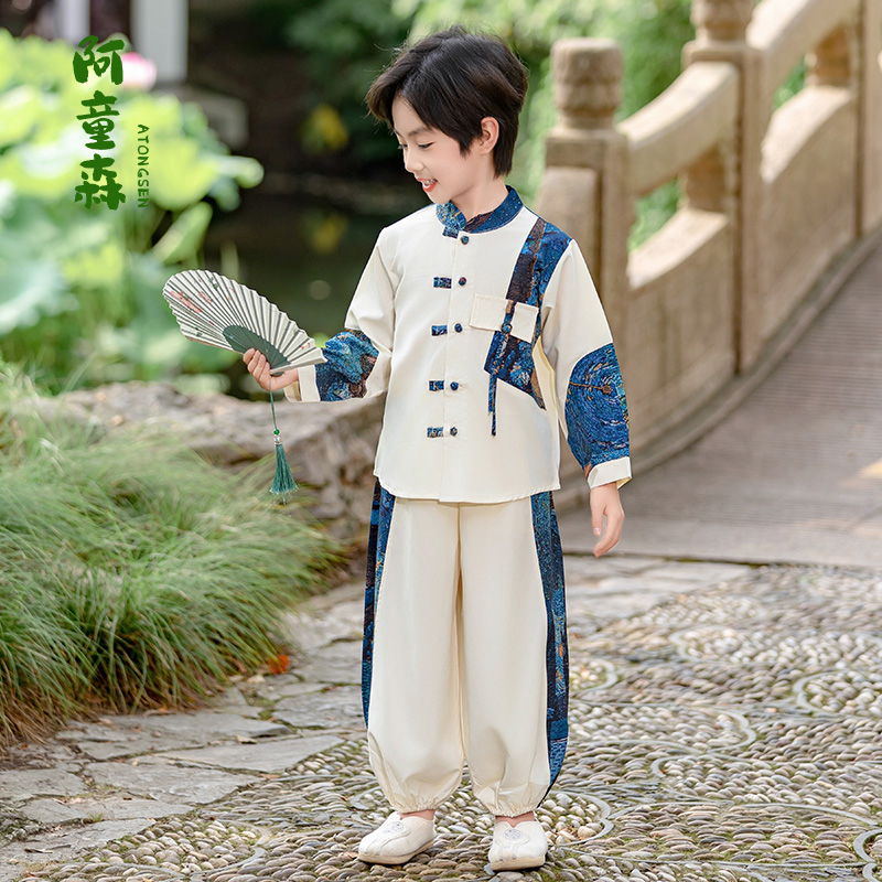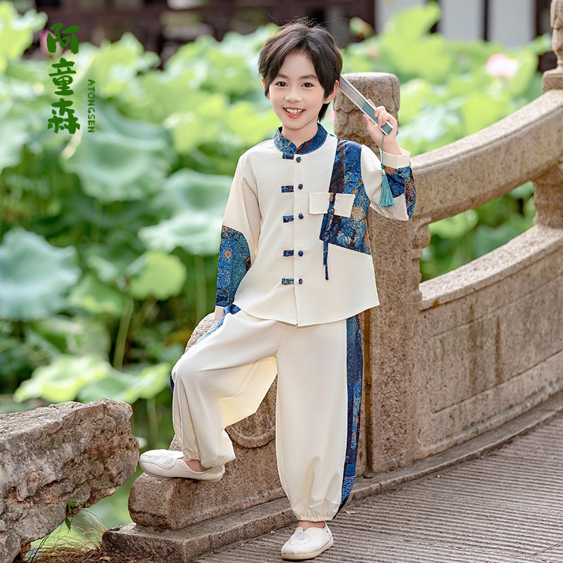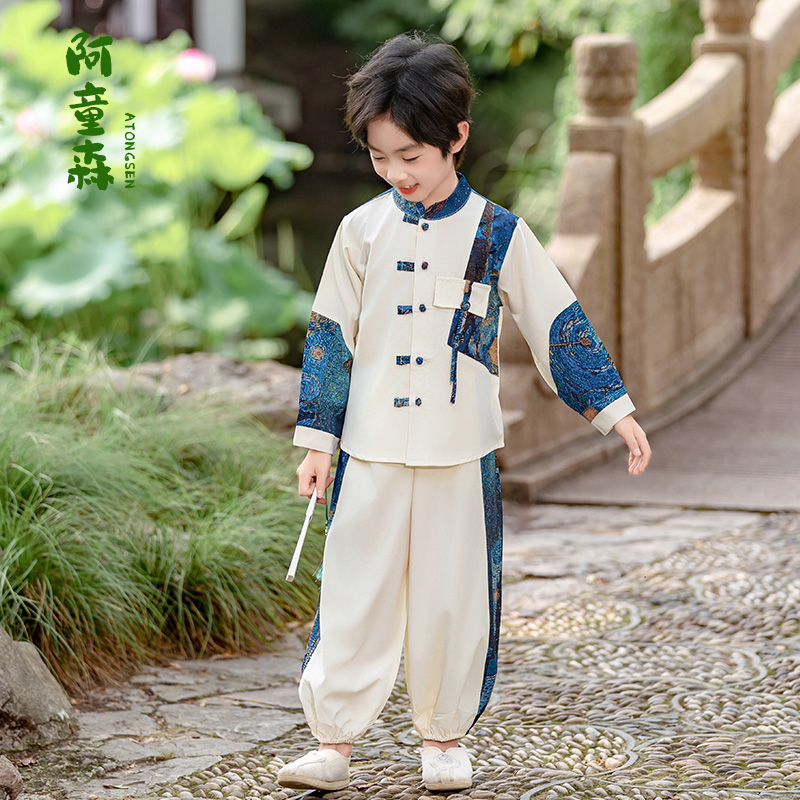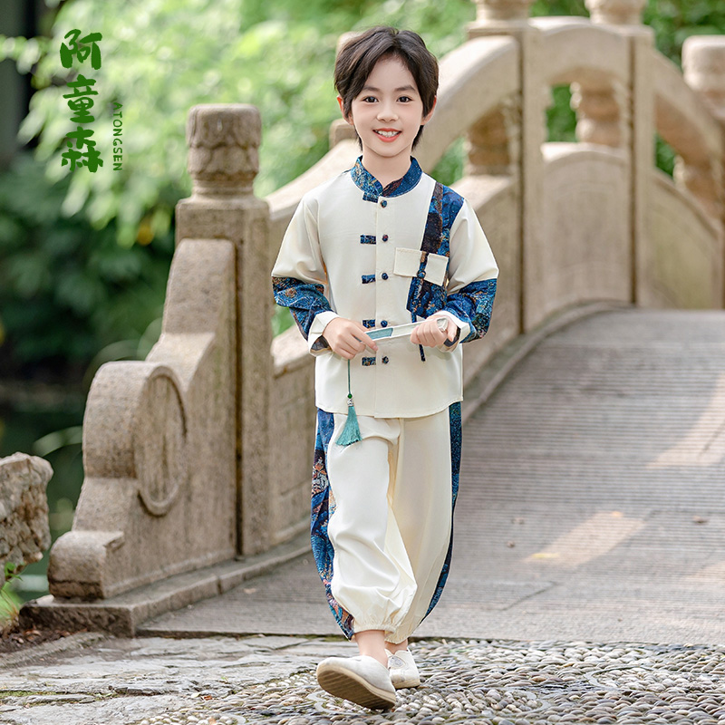 表演服宝宝古风国学唐装 男孩儿童古装 国风春秋套装 男童汉服新中式
