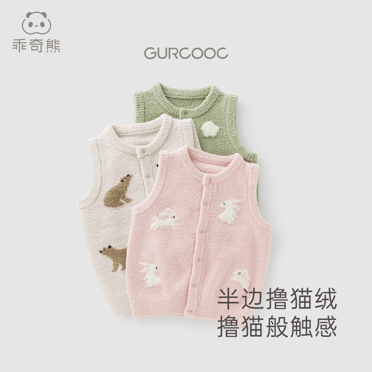 保暖上衣婴儿毛衣坎肩马夹外套 宝宝针织马甲秋冬季 半边撸猫绒