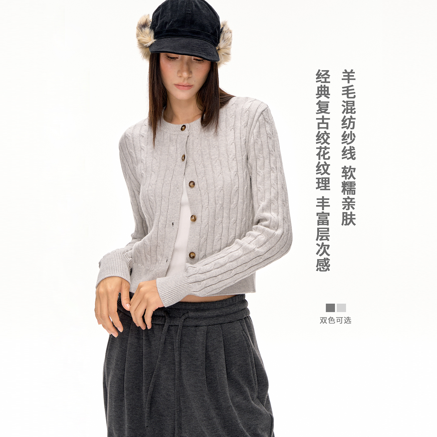 毛衣 绞花软糯羊毛混纺圆领针织开衫 CLIMAX VISION复古老钱经典