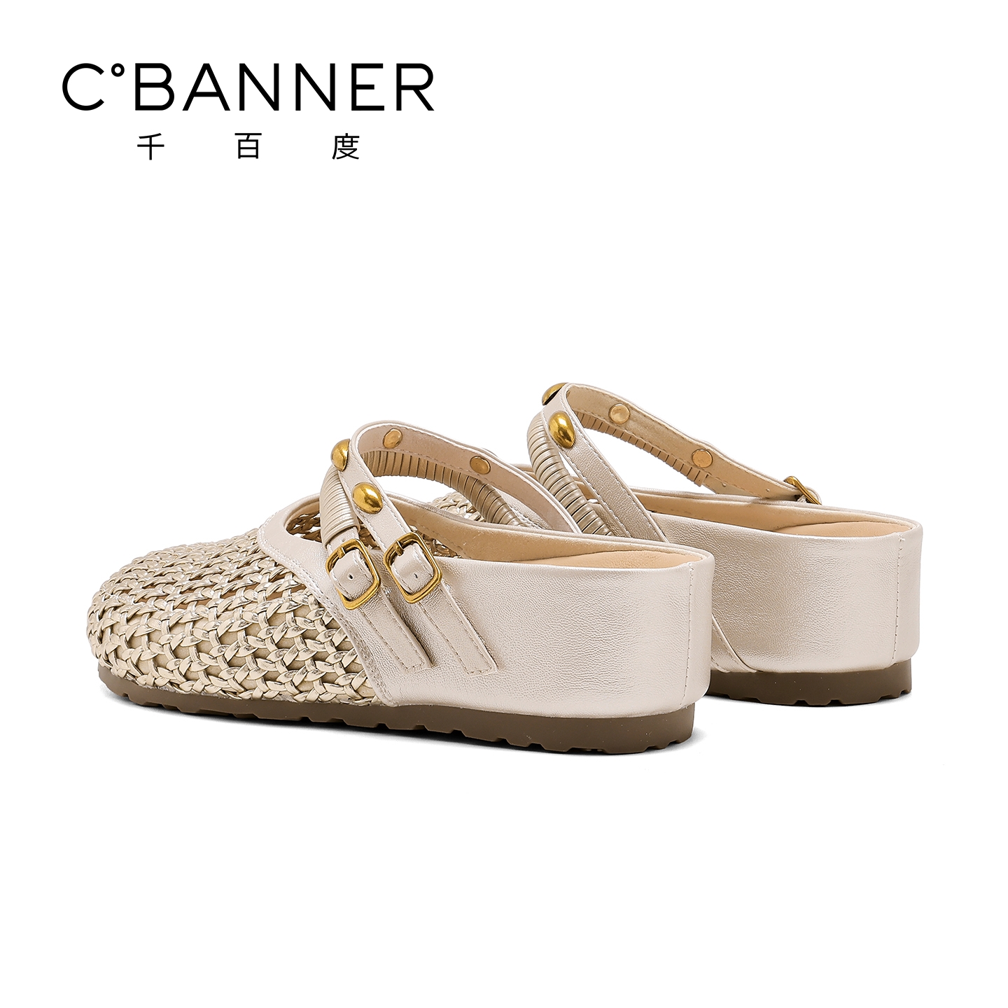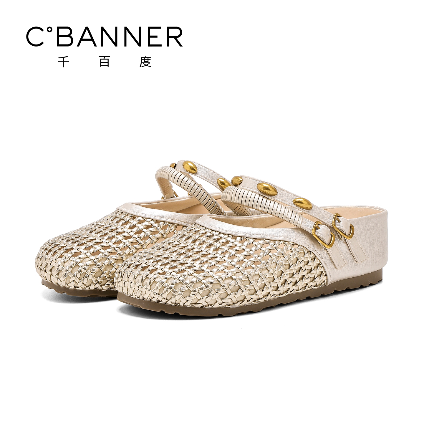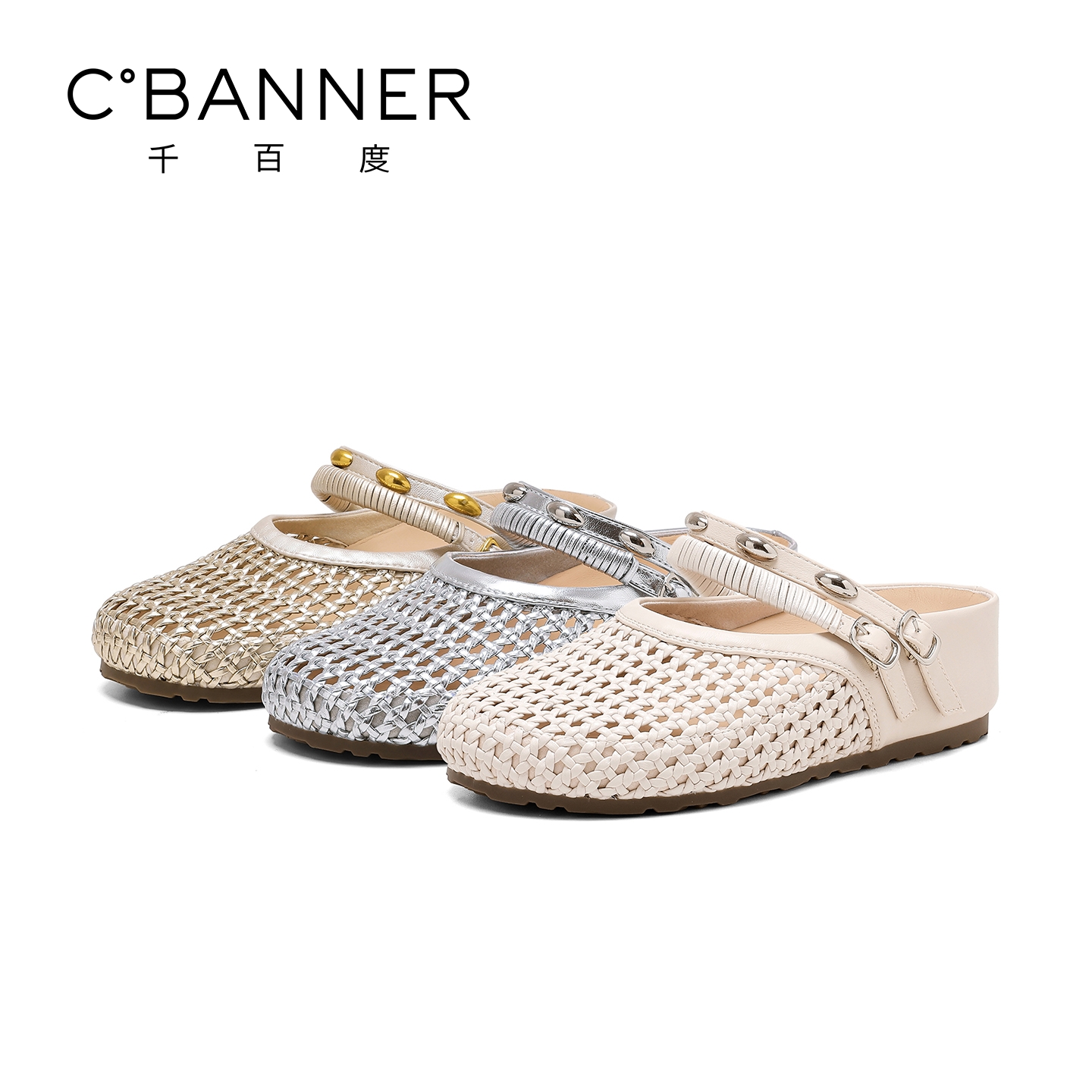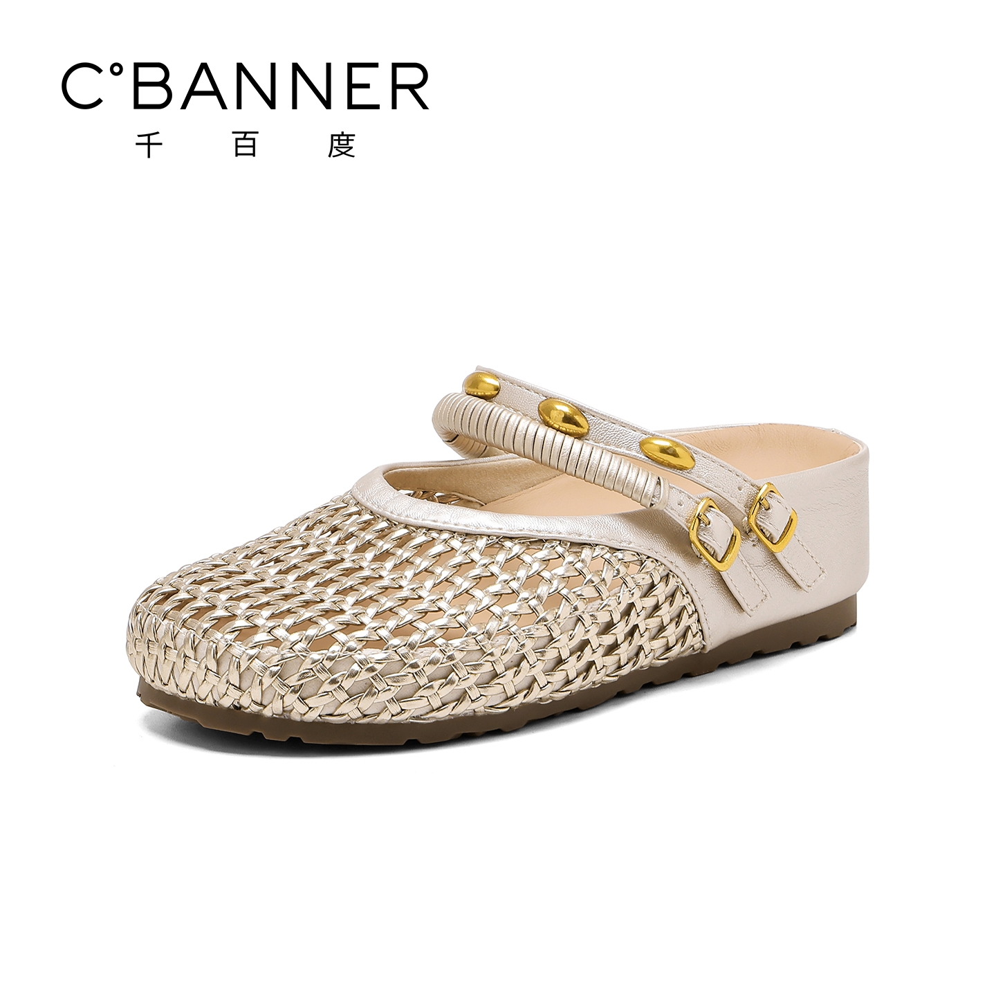 外穿厚底凉拖镂空罗马凉鞋 新款 女 女2025夏季 千百度编织包头半拖鞋