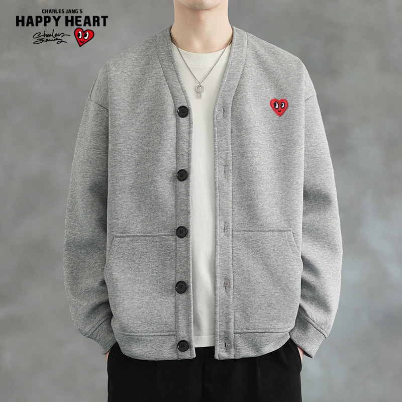 春秋季 卫衣男手绘字母印花连帽新款 外套 撞色格子开衫 查尔斯桃心