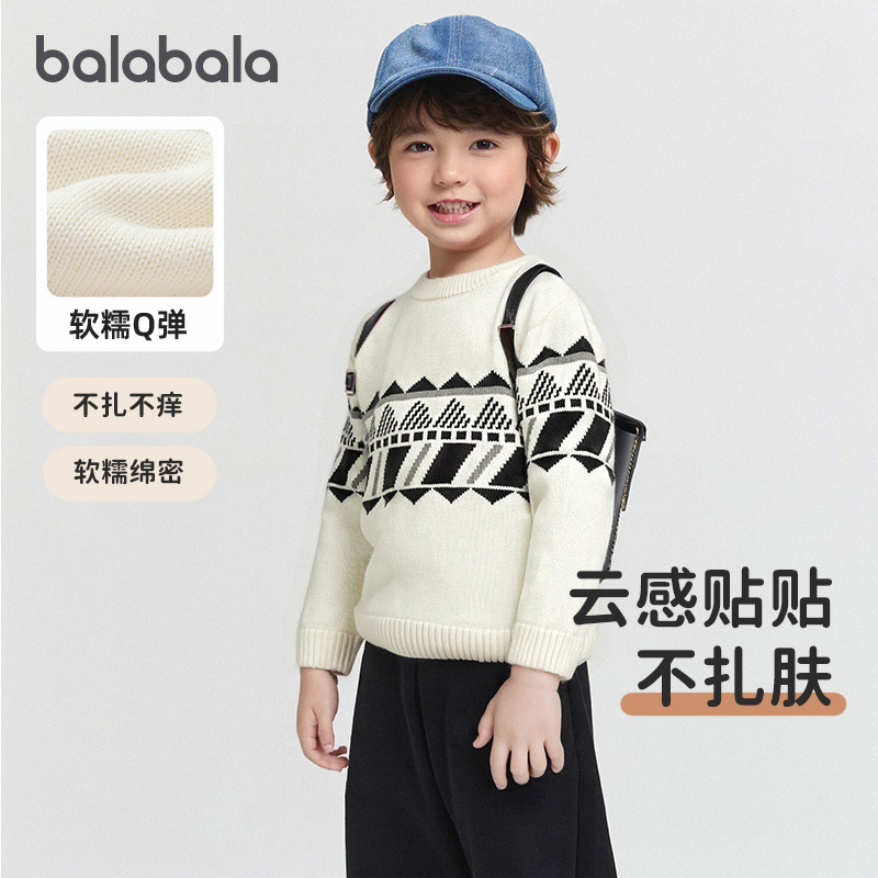 童装 巴拉巴拉男童毛衫 新款 2025冬装 儿童圆领毛衣小童费尔岛针织衫