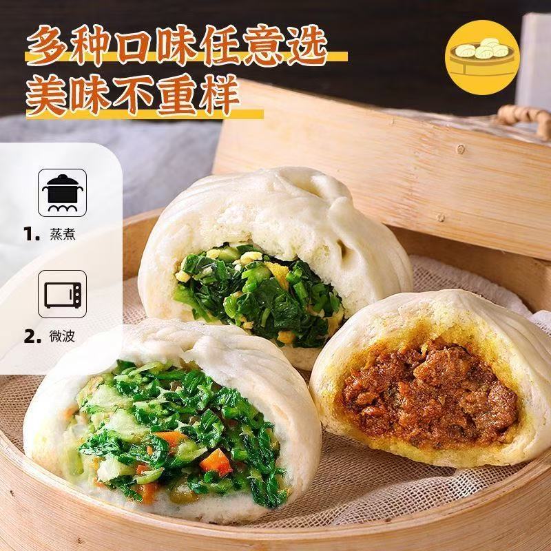 荠菜包子扬州素包子纯素植物油冷冻早餐包子速冻香菇青菜包子速食