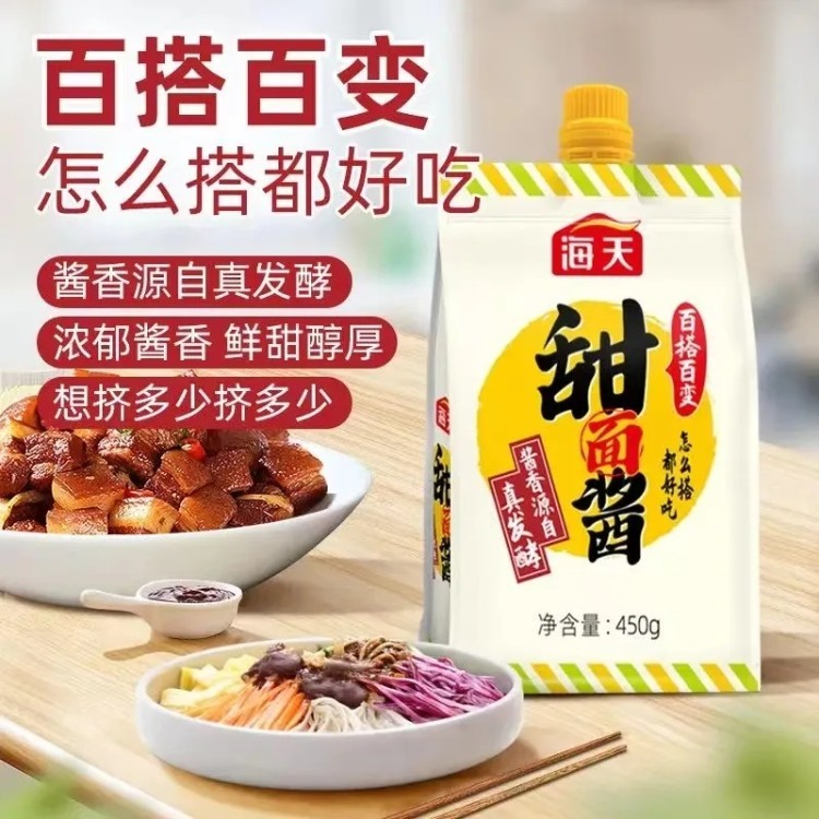 海天甜面酱家用450g挤挤装 北京烤鸭蘸酱炸酱面手抓饼煎饼果子酱料