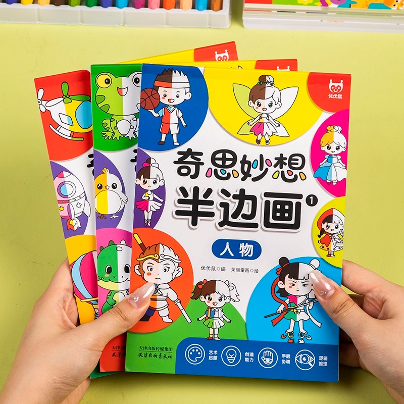 奇思妙想半边画全3册儿童汽车零基础绘画三大主题人物动物交通启蒙培养专注力激发想象力插画涂鸦本儿童画画早教启蒙益智美术教材
