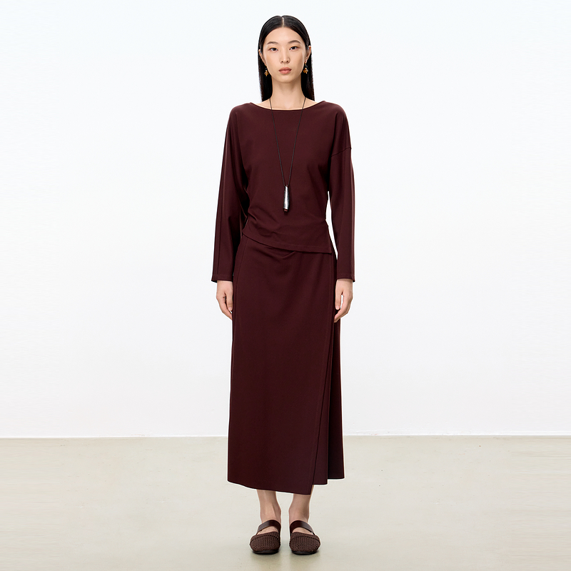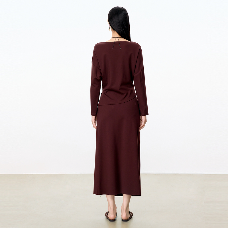 新款 2025秋季 宽松圆领简约上衣高腰直筒半身裙套装 水云间女装