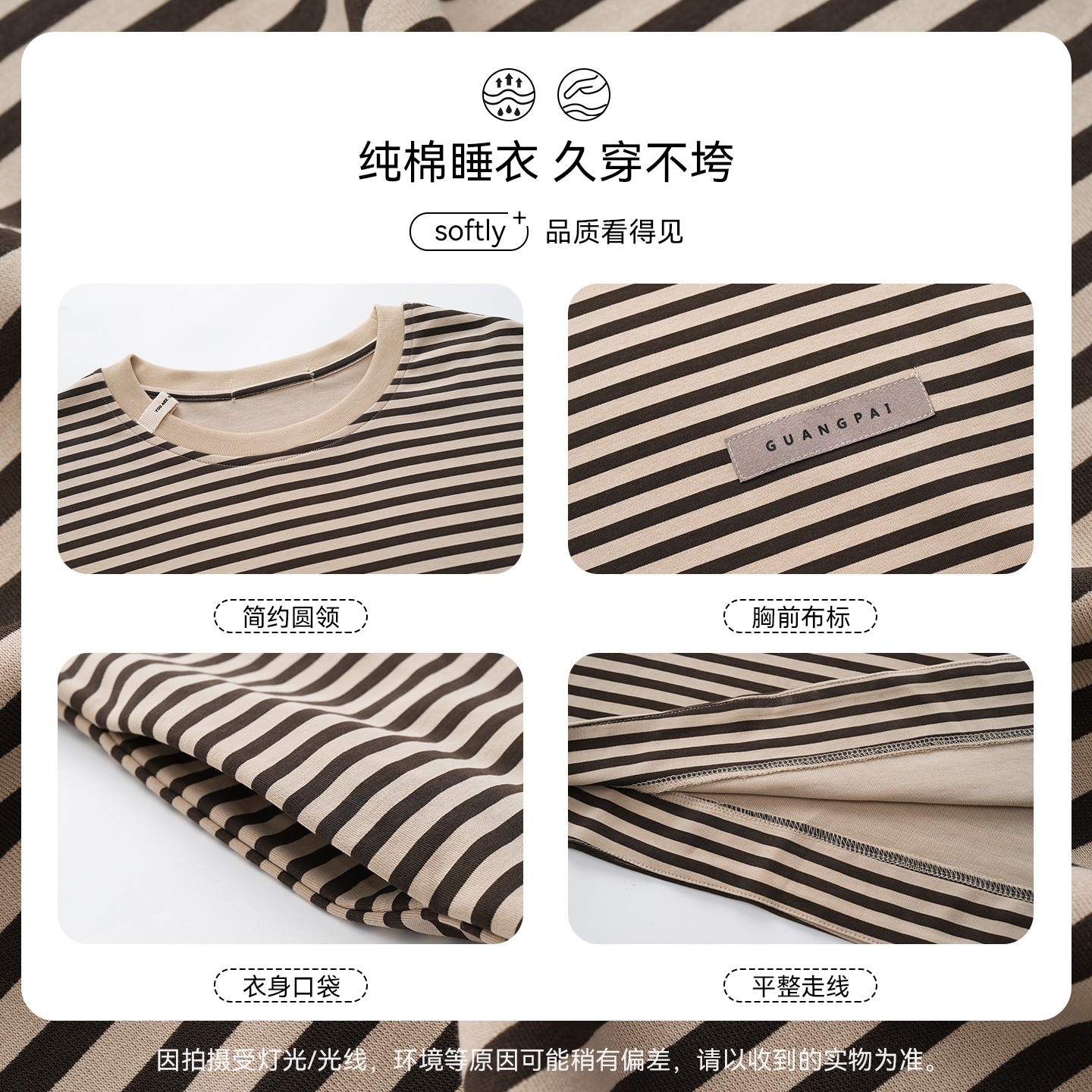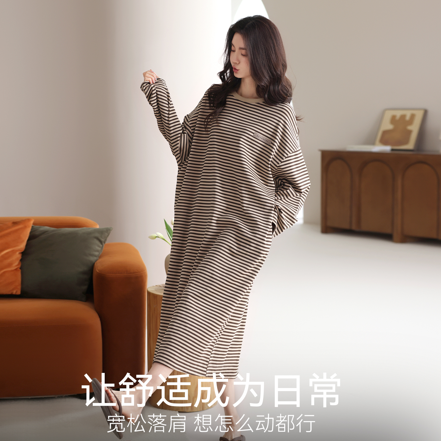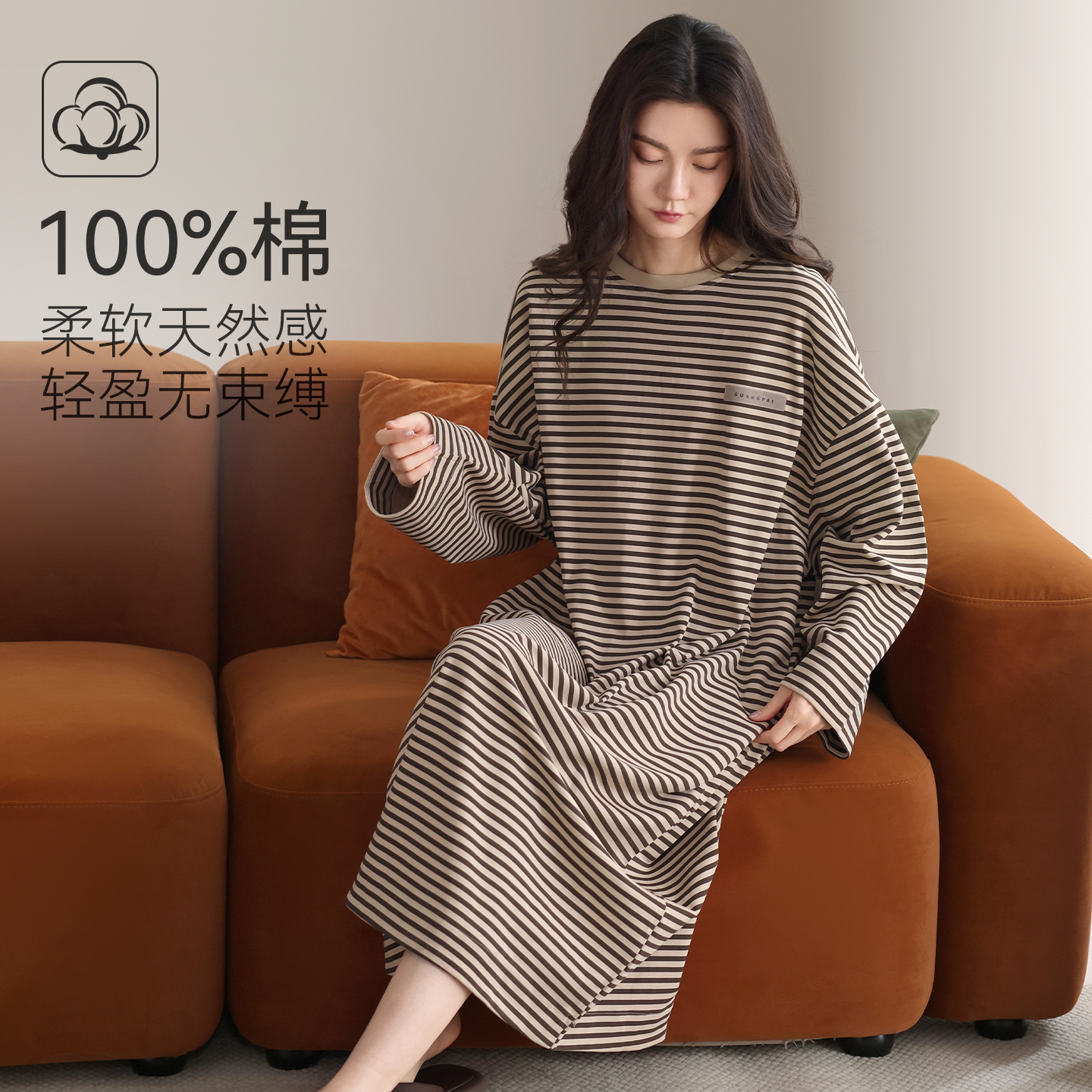 莫代尔100%纯棉睡裙女带胸垫春秋季 条纹睡衣可外穿家居服 2025新款
