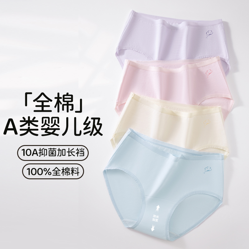 顶瓜瓜A类内裤 女100%纯棉抑菌无痕亲肤女士透气中腰女生三角短裤