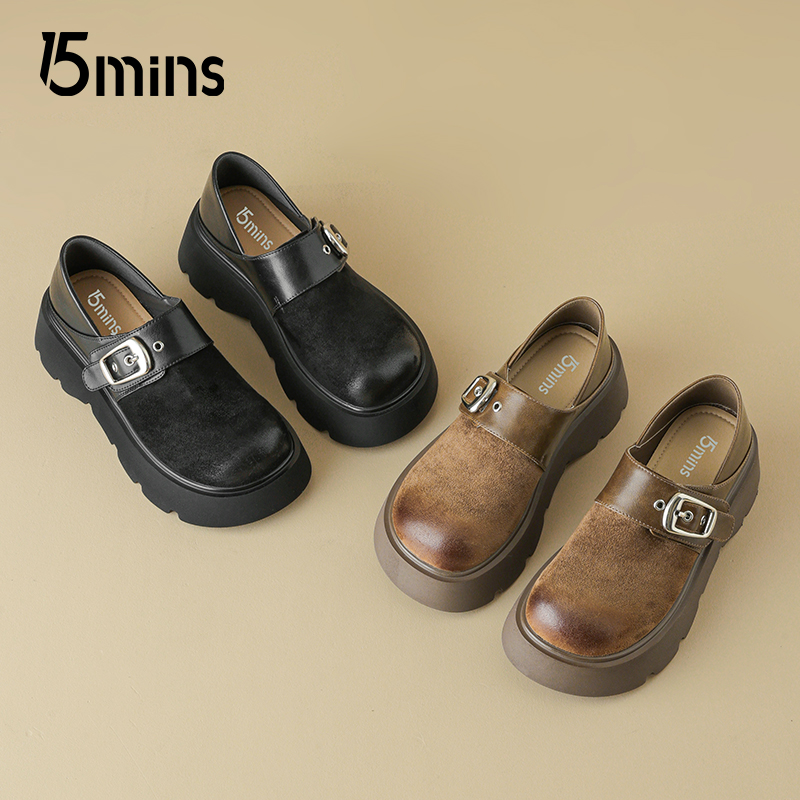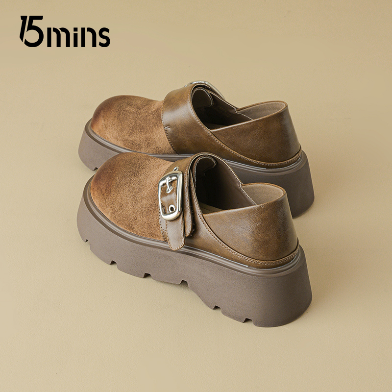 女2025秋季 棕色小皮鞋 新款 全包单鞋 子 复古乐福鞋 15mins厚底勃肯鞋