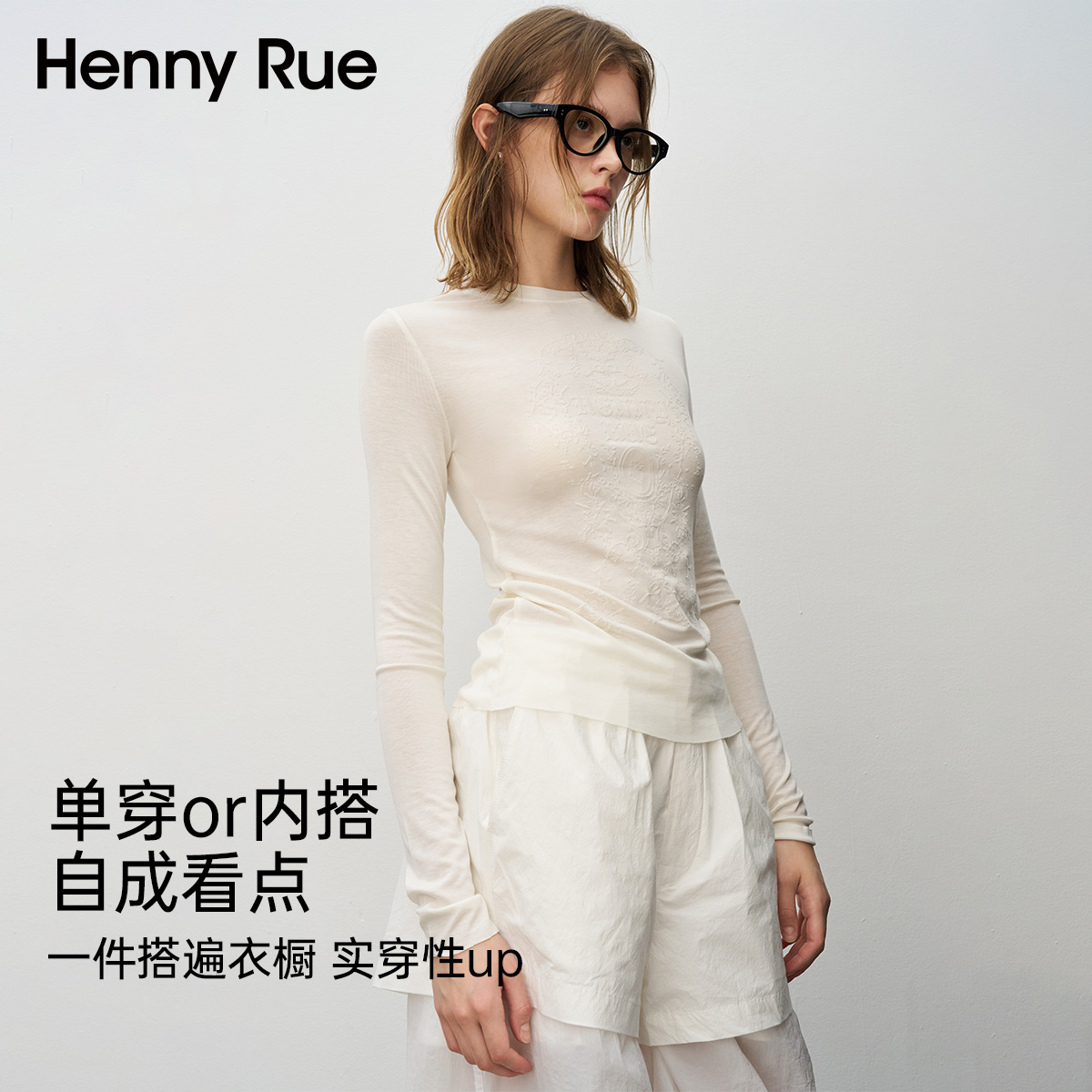 女 T恤打底衫 HENNY RUE亨尼露女士秋冬植绒印花天丝闲百搭圆领长袖