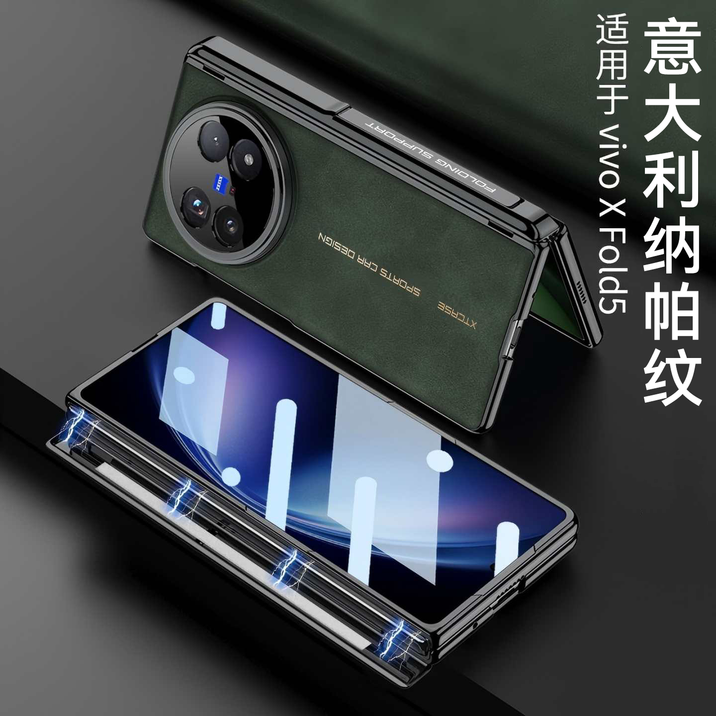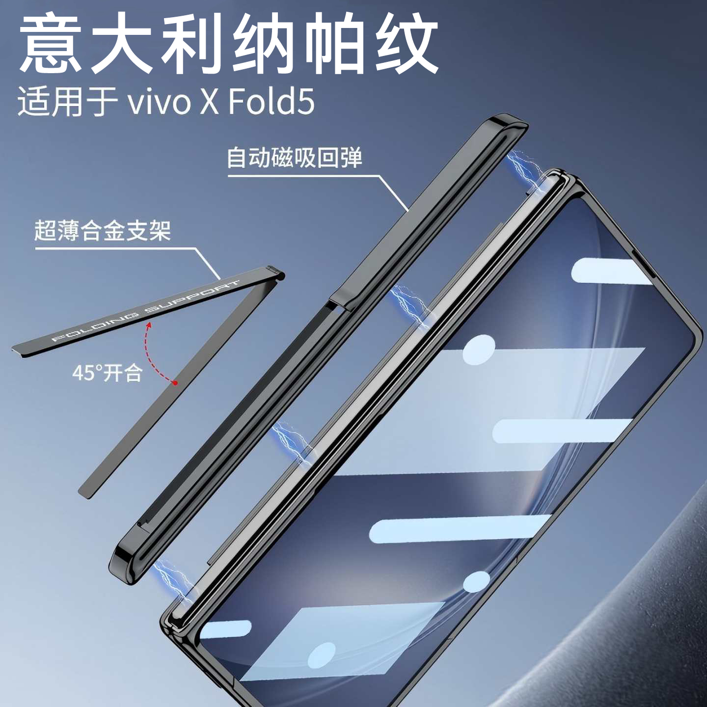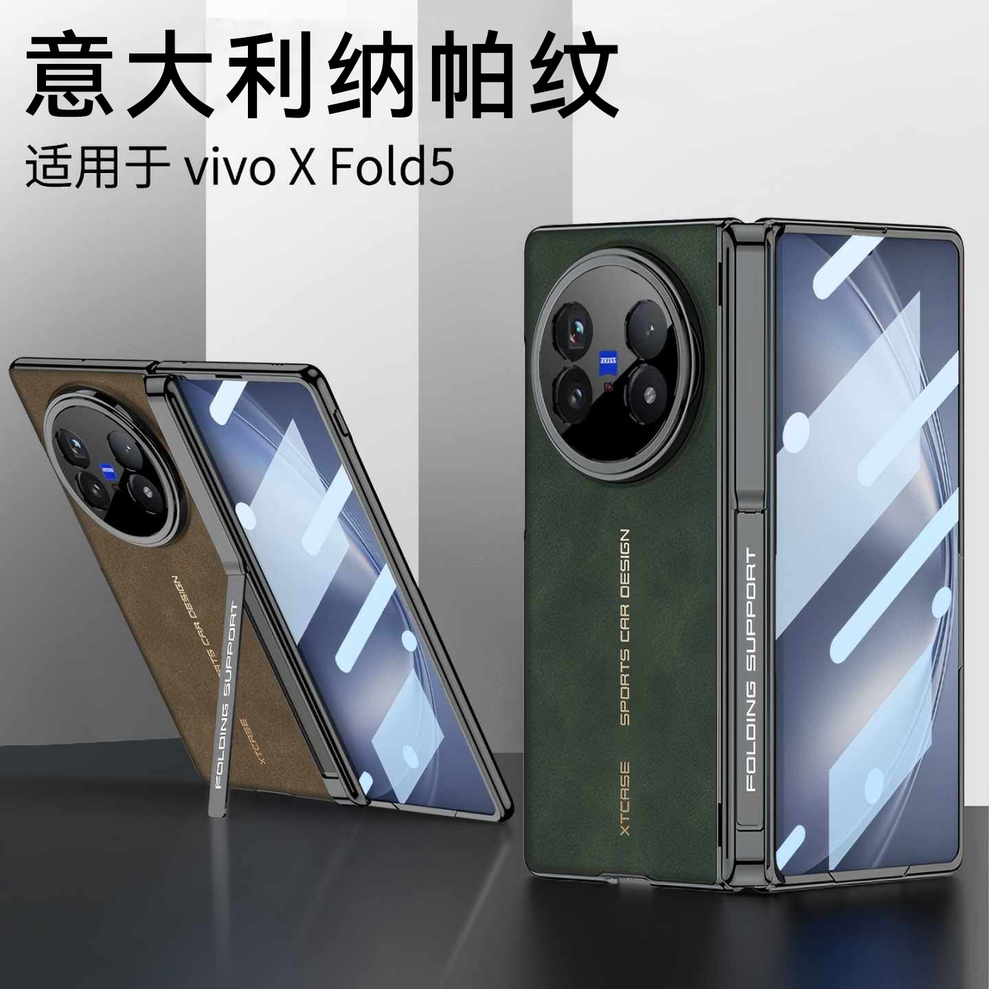 lx超薄真皮xfold5外壳带支架 fold5新款 保护套前后全包防摔 乐比亿适用vivoxfold5手机壳折叠屏保护壳vivo