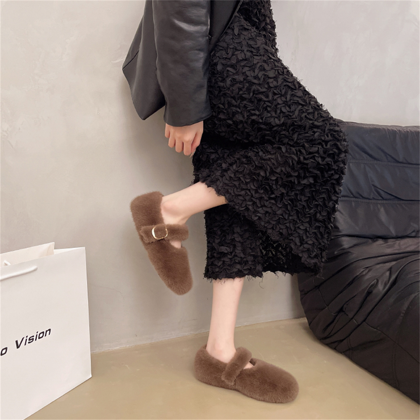 爆款 法式 时尚 平底毛茸茸鞋 温柔绝美棉鞋 新款 玛丽珍鞋 子女2025秋季
